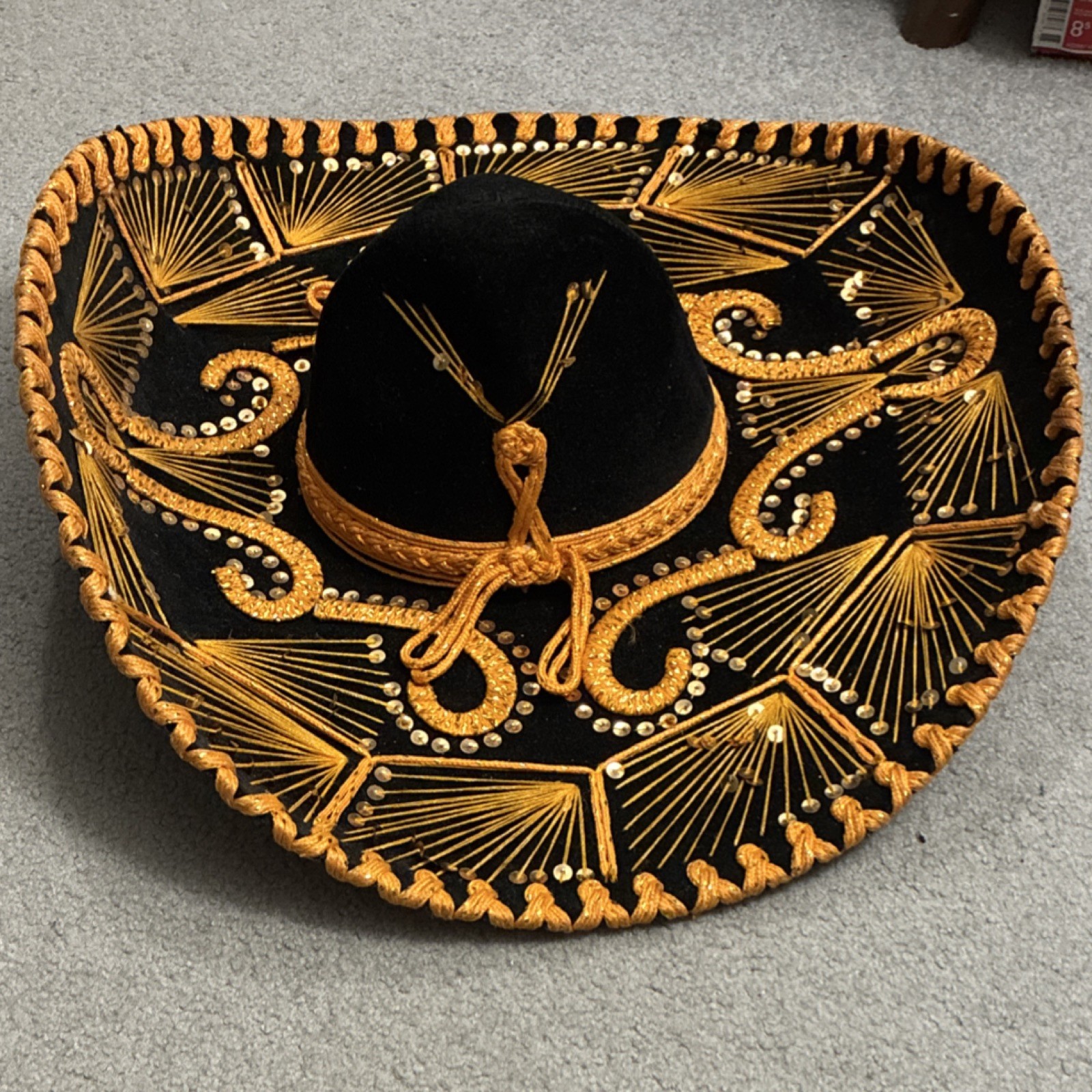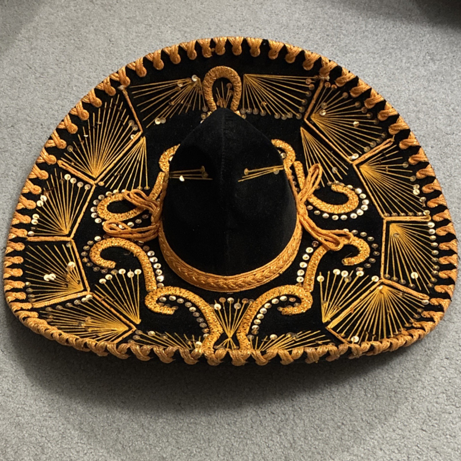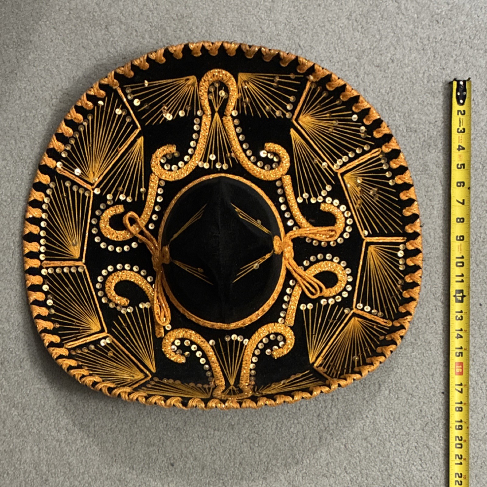 как выглядит Vintage Authentic Mexican Sombrero Black Gold Embroidery фото