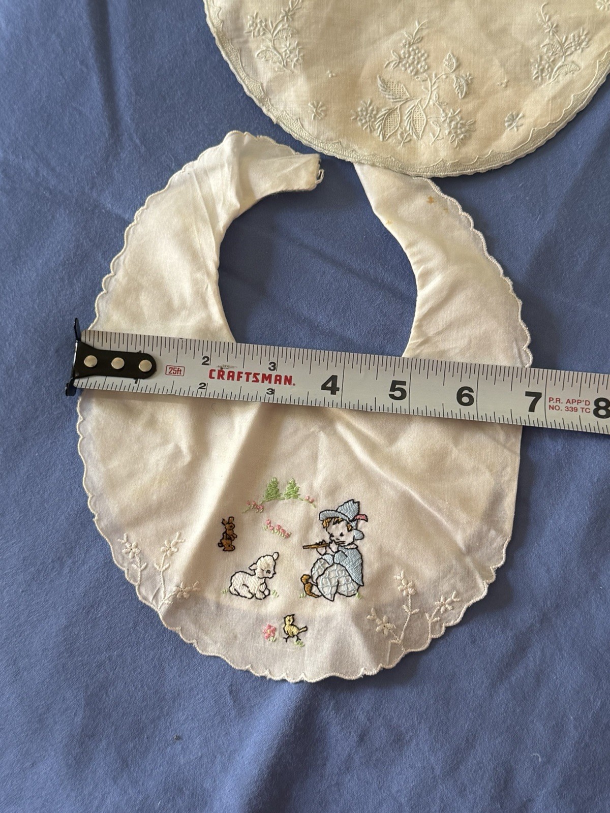 Lot Of 2 Baby Bibs Antique Vintage Embroidered Victorian Linen Hand Stitch Lamb