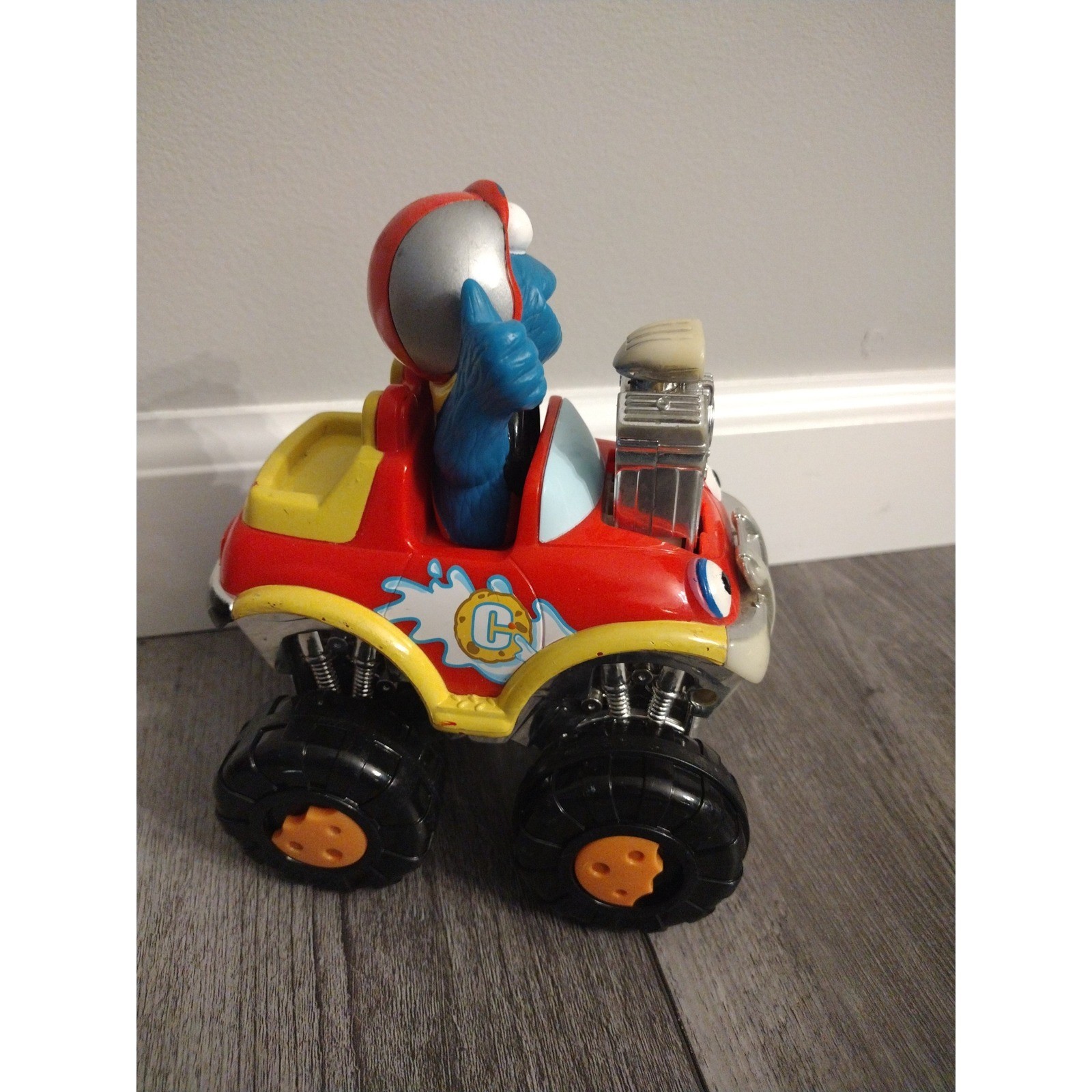 как выглядит vintage Sesame Street Cookie Monster Press n Go Race Car toy 2002 Mattel фото