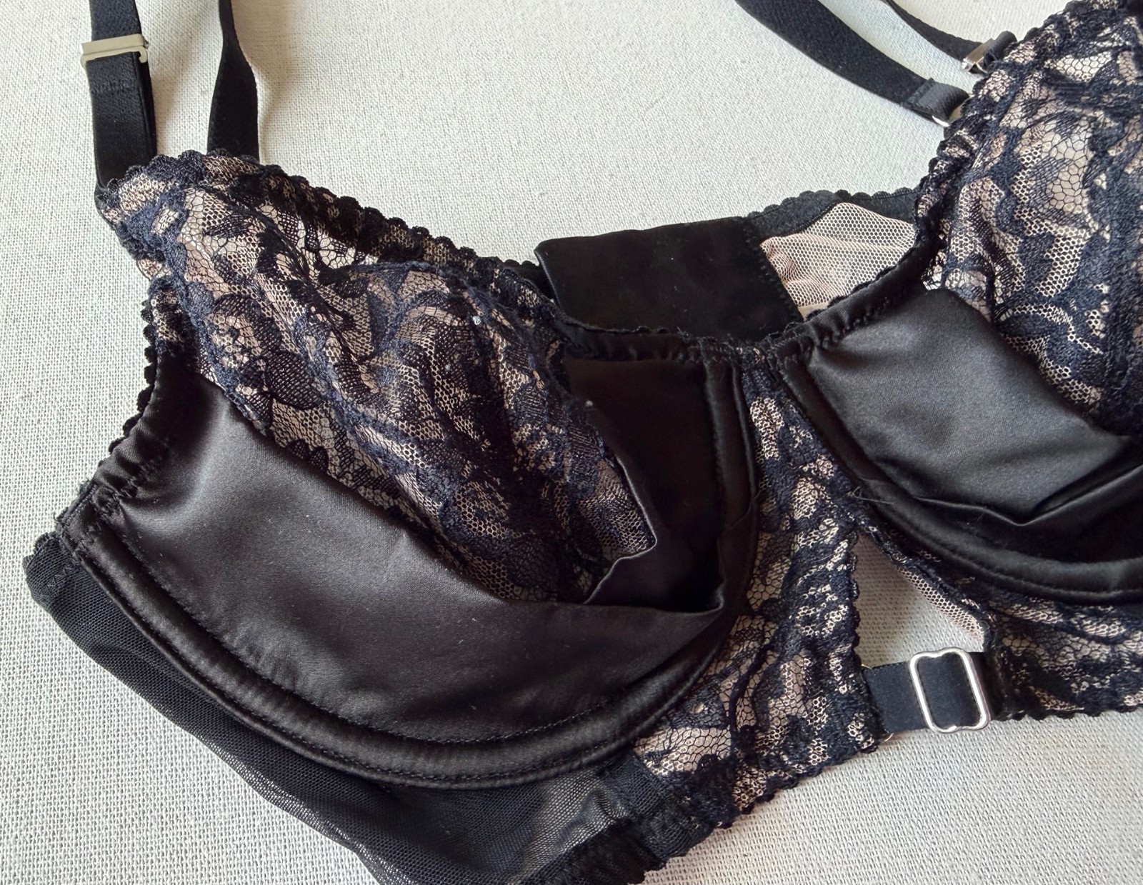 как выглядит Victorias Secret 34B Satin Lace Balconette Corset Bra Black Mesh Gothic Goth фото