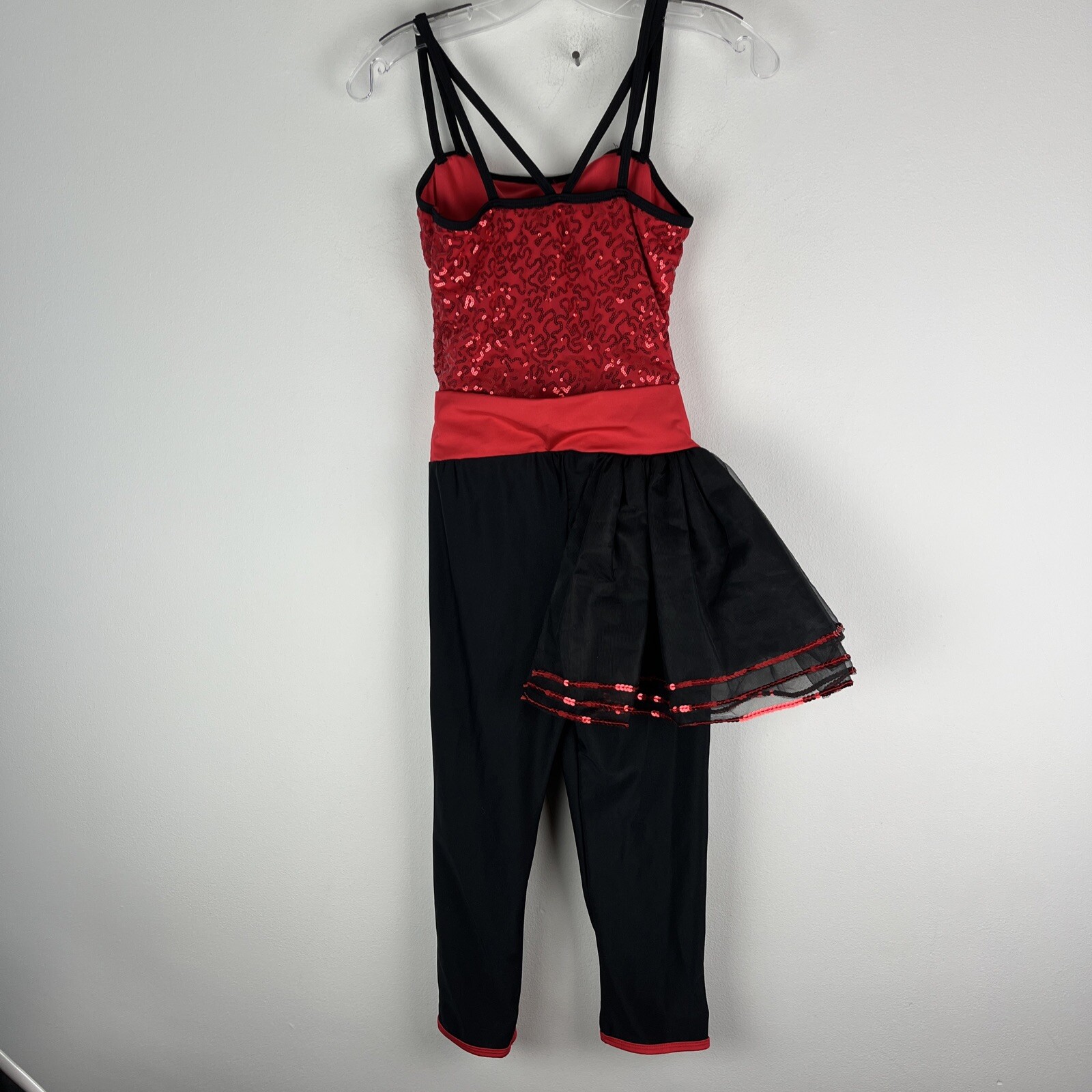 REVOLUTION Dancewear Costume Red With Black Sz SA Small Adult Sequin One piece