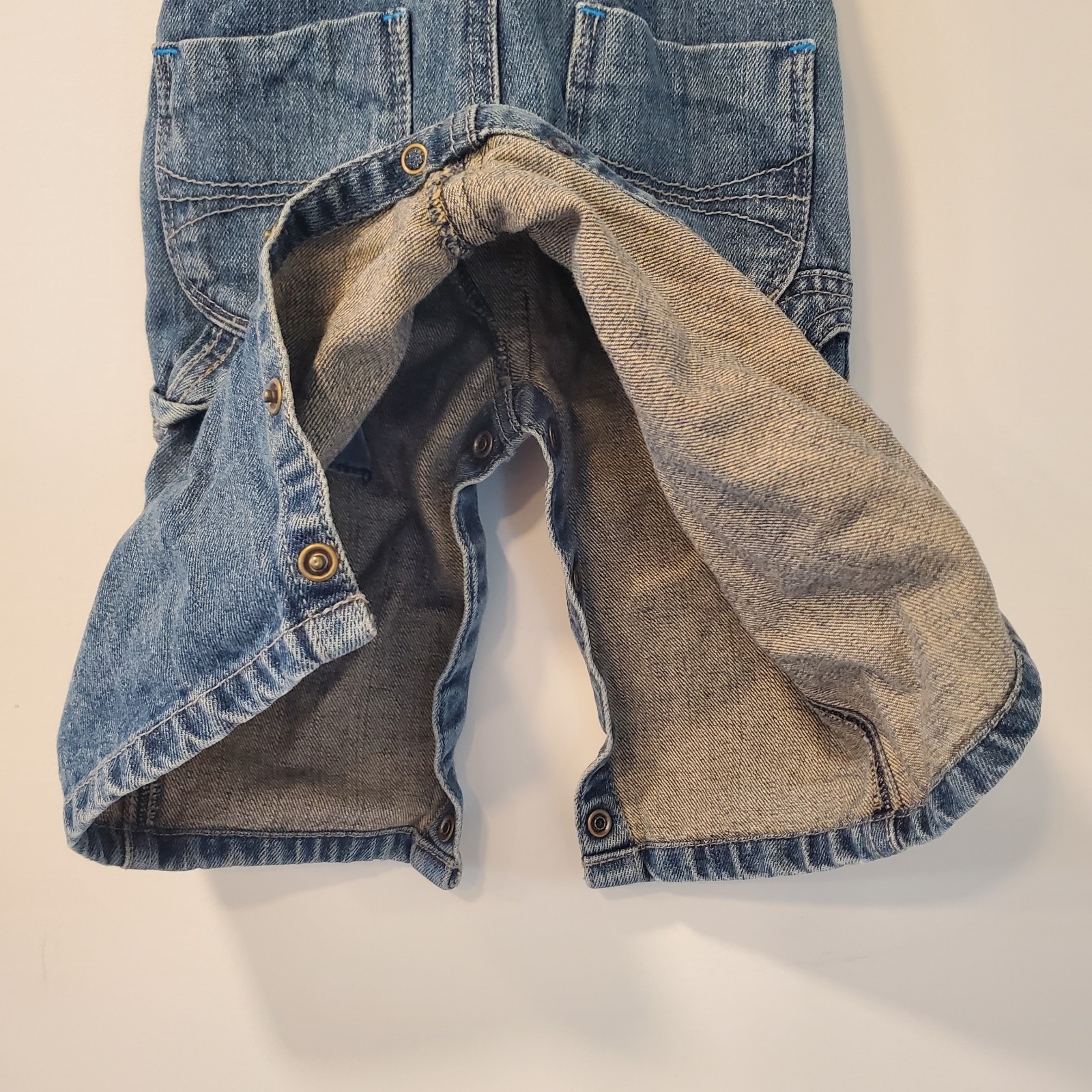OshKosh Denim Overalls Boys 12 Months Blue Jean Bib Snap Crotch Pockets