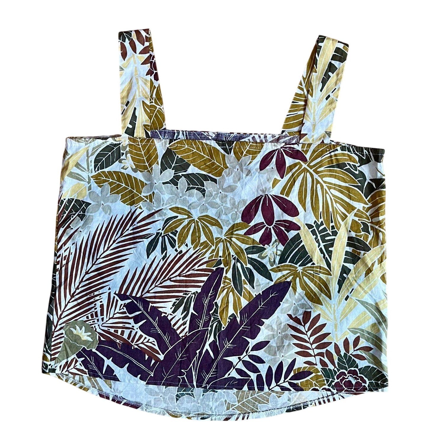 Vintage 60s 70s Tropical Botanical 2 Piece Set Tank Top Pleated Midi Skirt