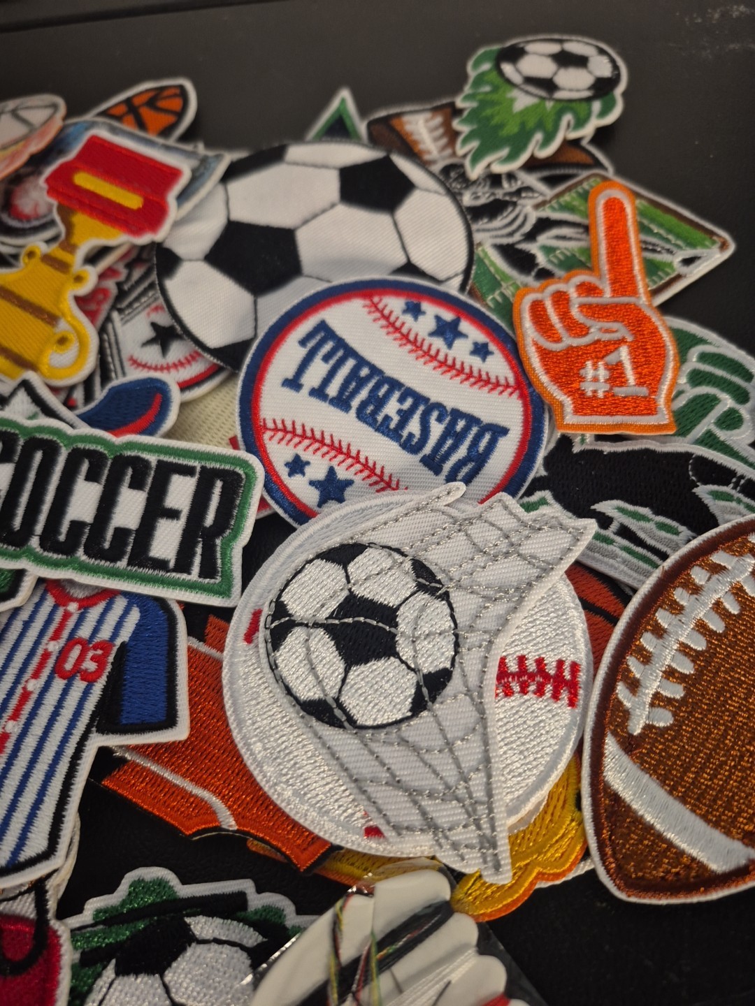 как выглядит collection of assorted sports-themed embroidered Iron On patches фото
