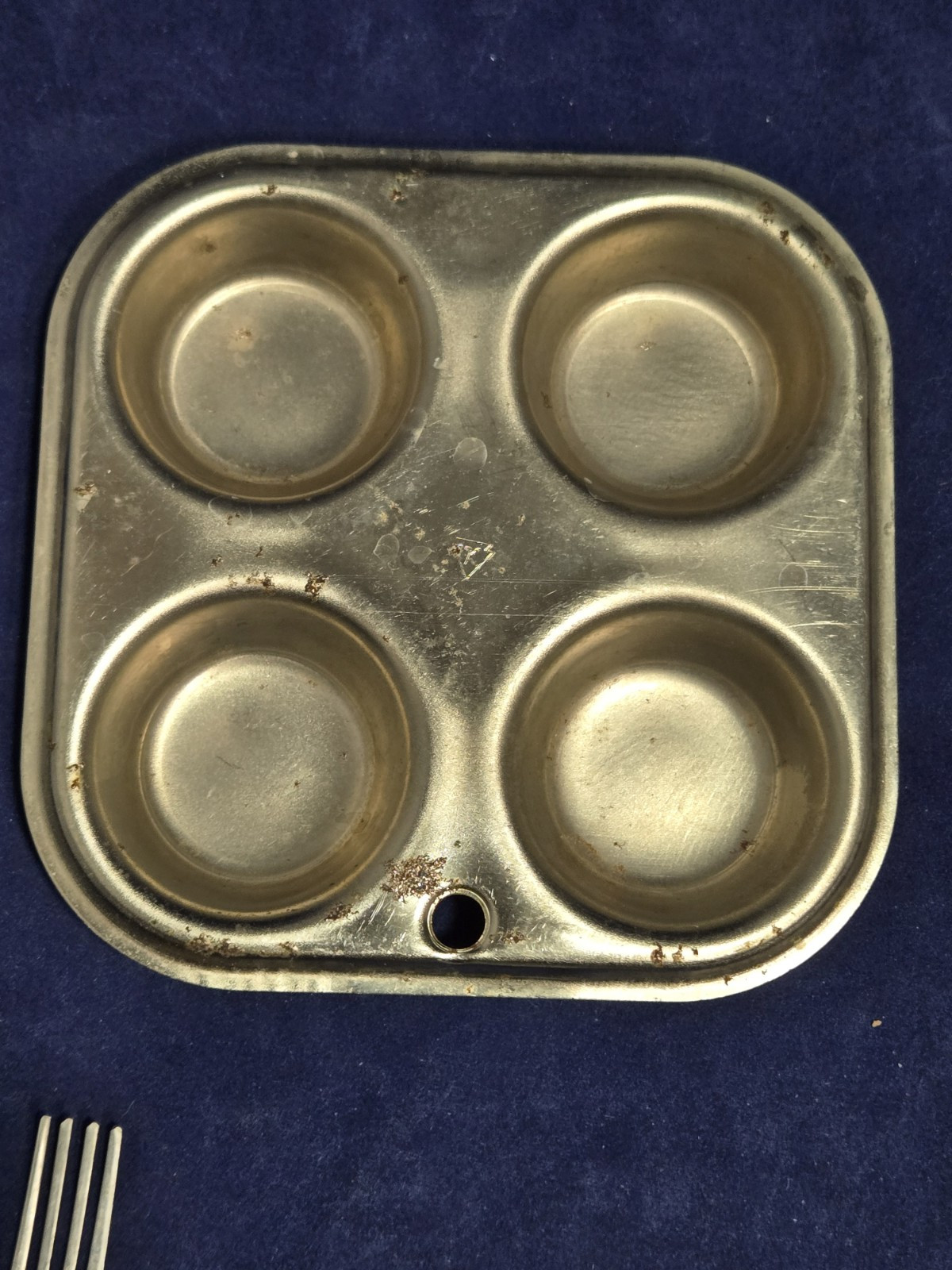 как выглядит Lot Of 4 Vintage Aluminum Childrens Cooking Utensils, Bundt Muffin Pan -A2081 фото