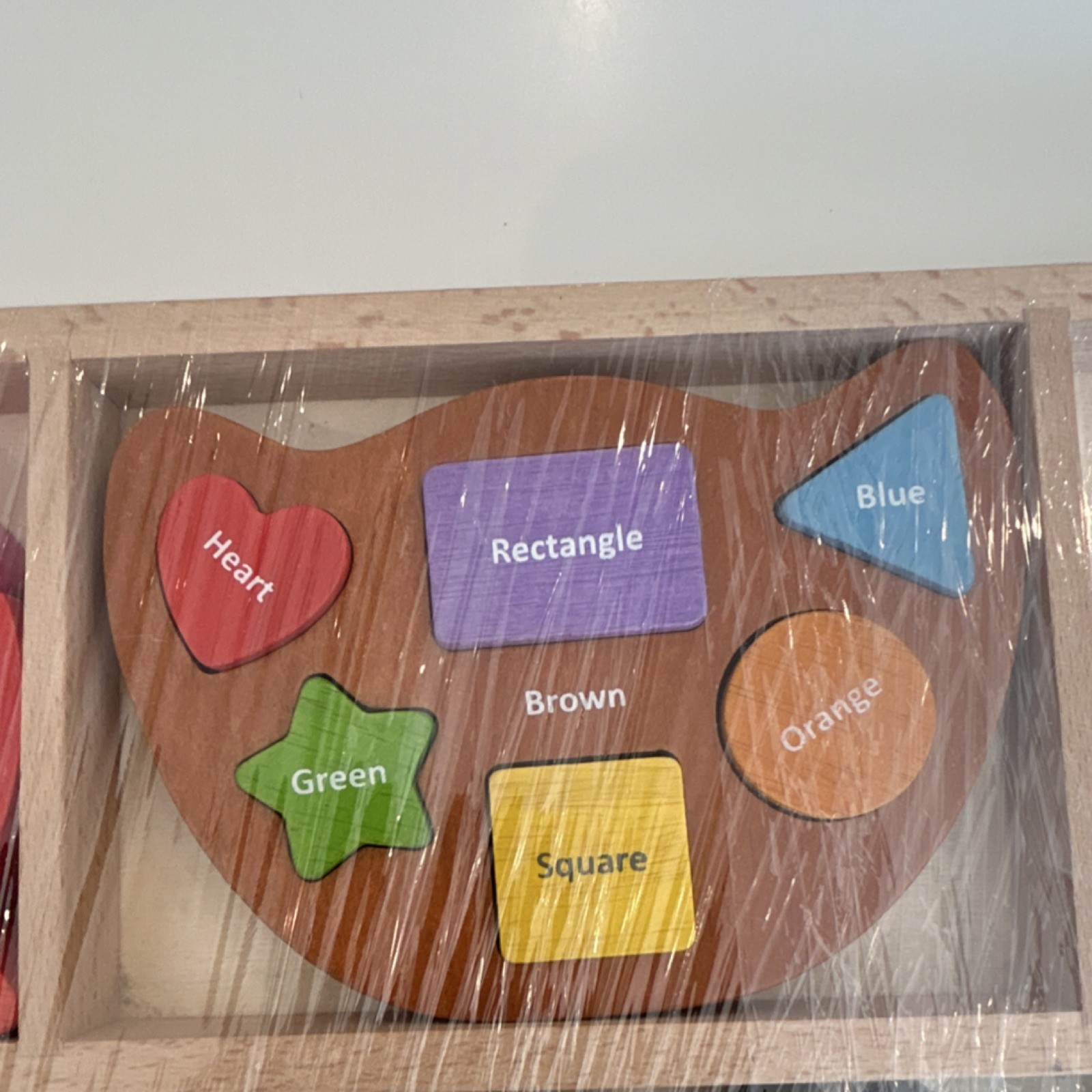 как выглядит Classic durable Wooden Puzzle Set 4 seperate colors numbers letter shapes HTF фото