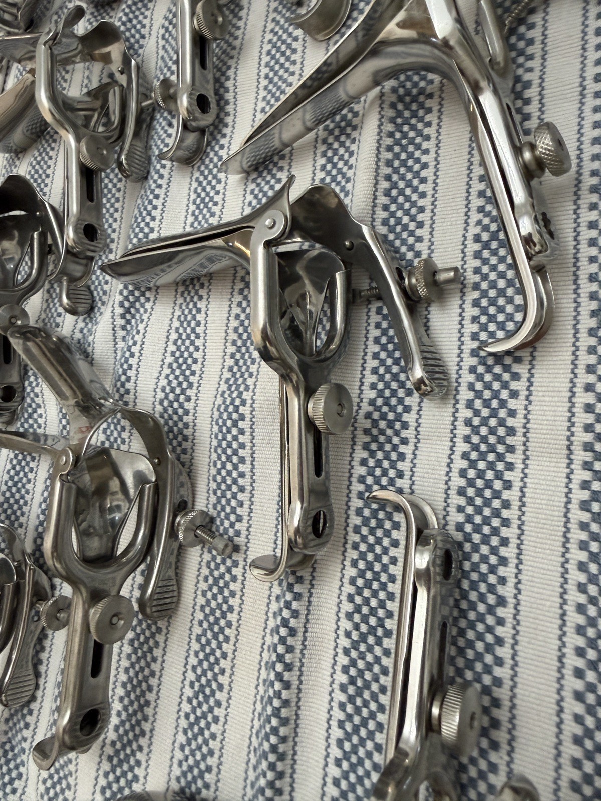 VINTAGE Set of 23 stainless steel vaginal speculums of varied sizes LARGE LOT