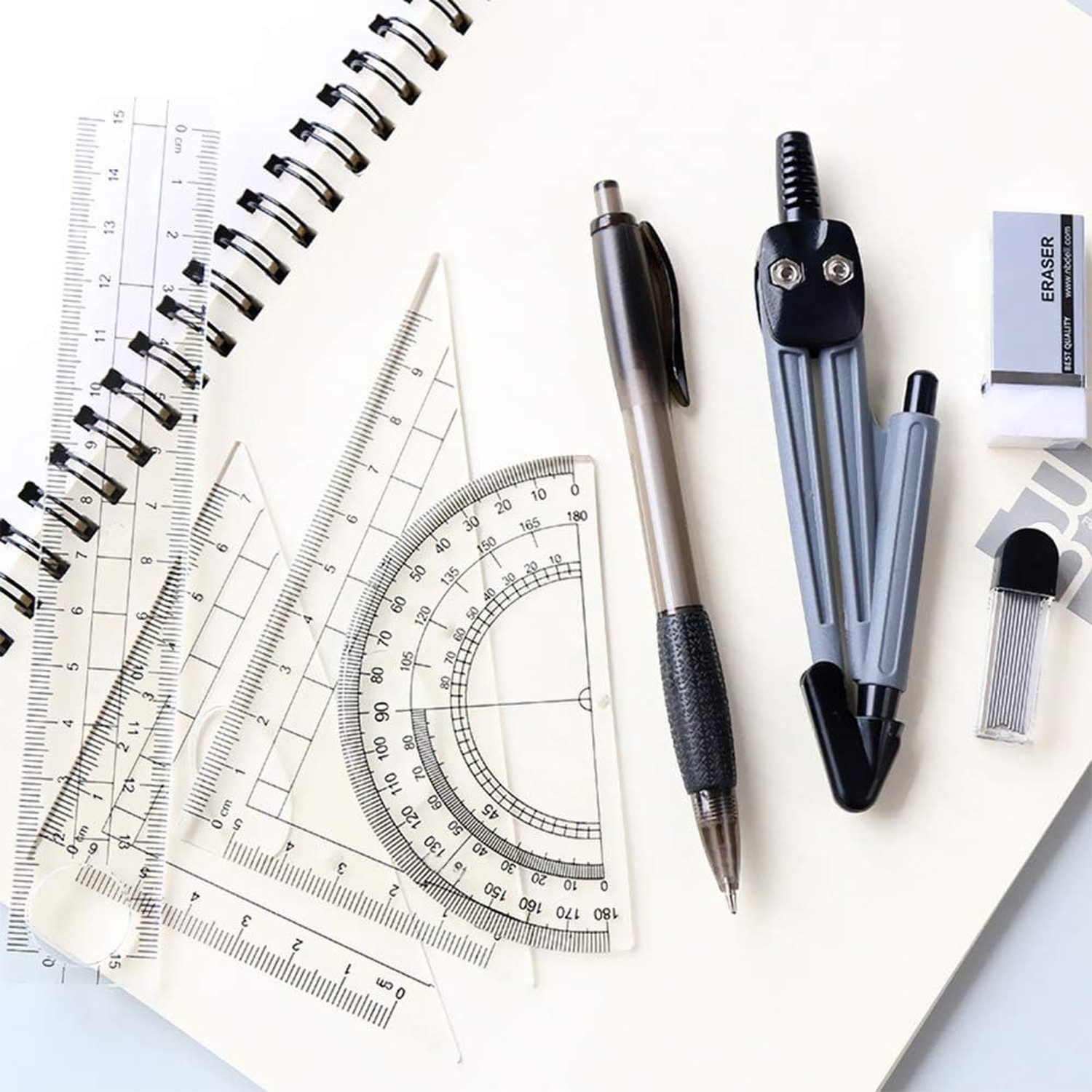 как выглядит Math Geometry Kit Set 8 Pieces Student Supplies with Shatterproof Storage Box... фото