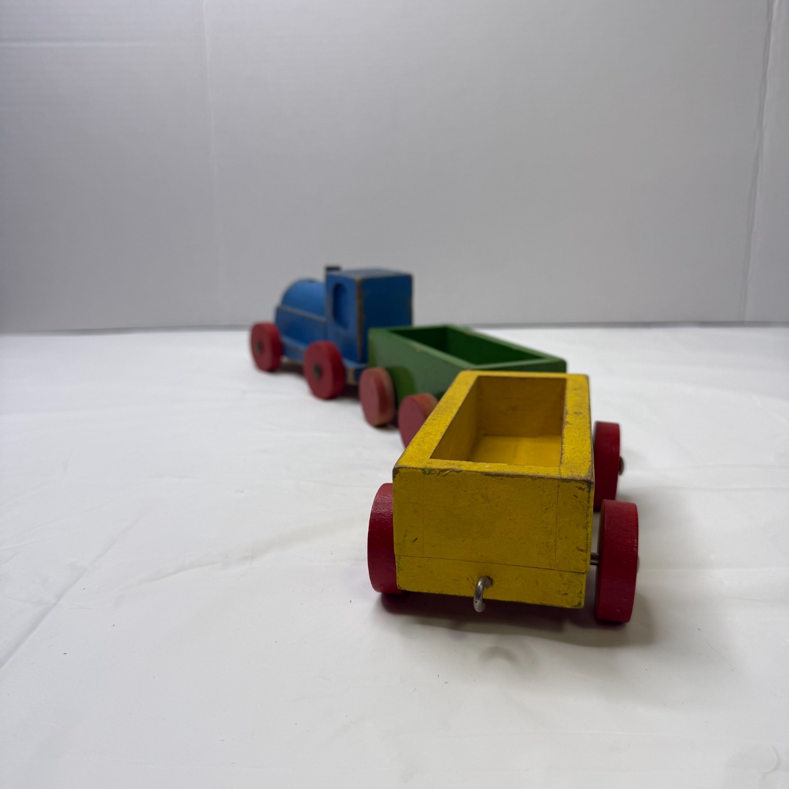 Wooden Toy Train Engine Cars Vintage Wood Pull Along Set 3pc