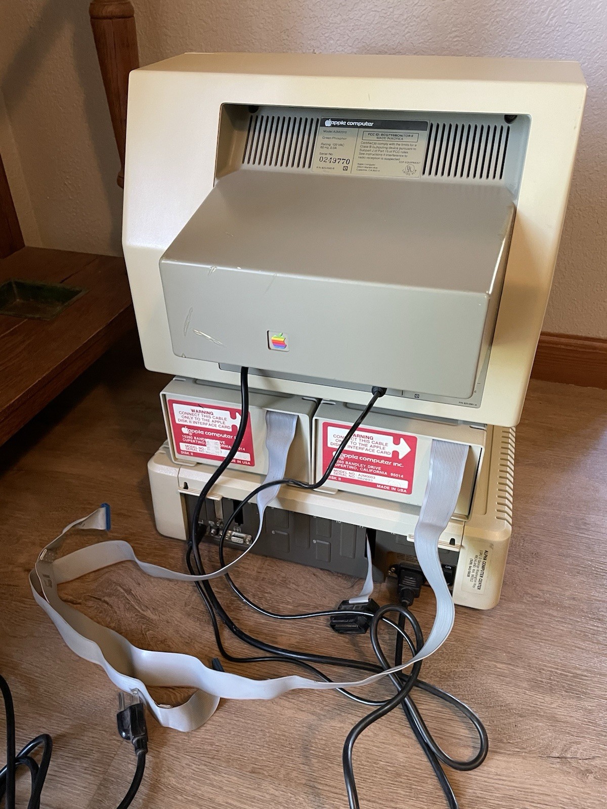 VTG Apple IIe Computer Monitor Dual Disk II Drives Manual Pascal POWERS ON