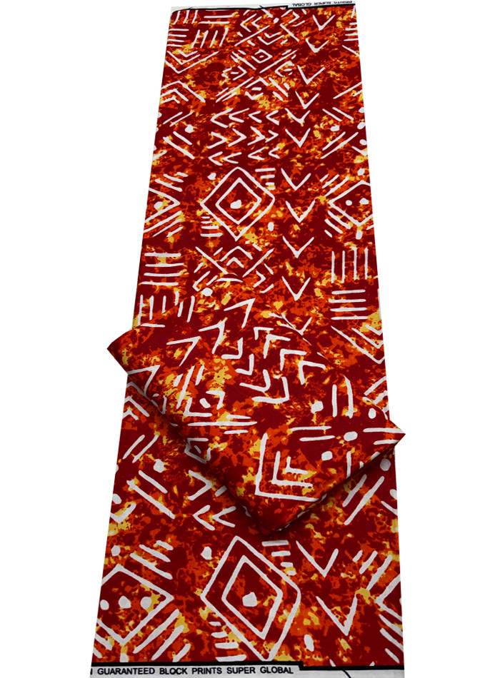 African Ankara Wax Print,100 Cotton, Sell by 6 Yards-Red Orange Yellow White