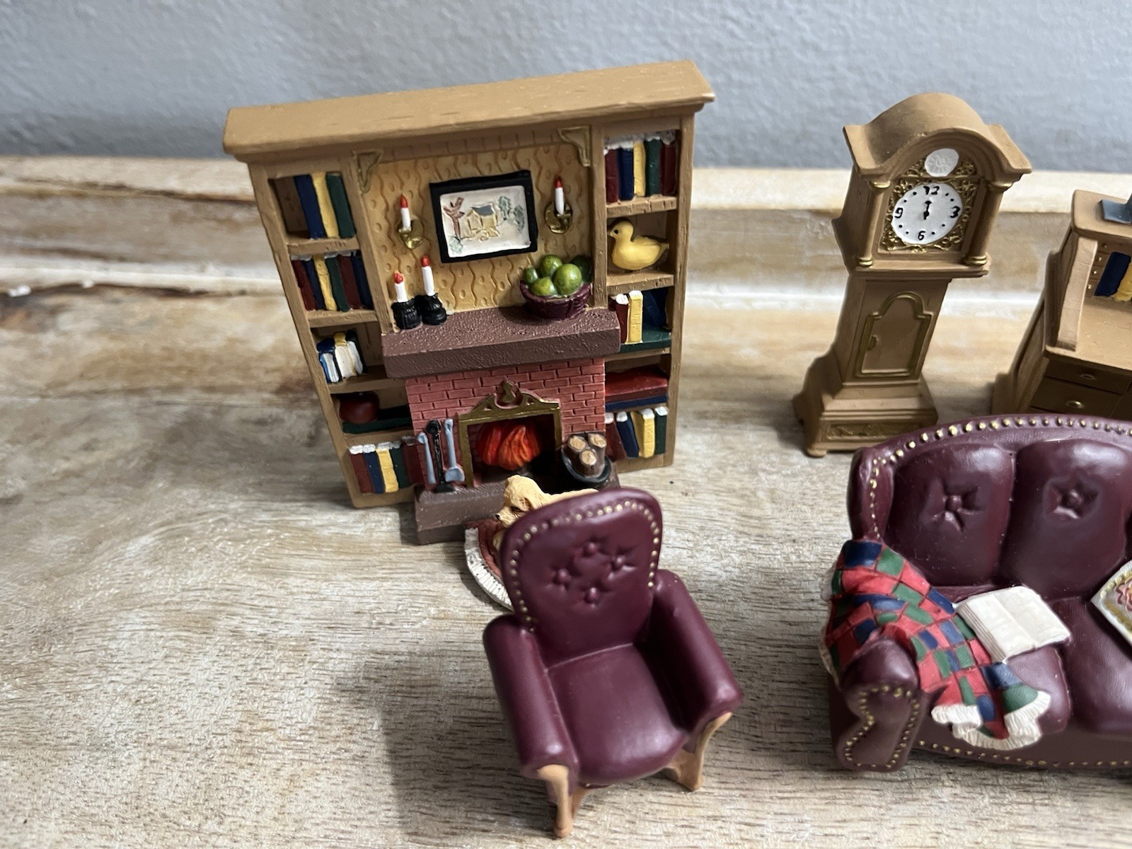 Set Includes: Desk, Desk Chair, Couch, 2 Chairs, Bookcase, Grandfather Clock