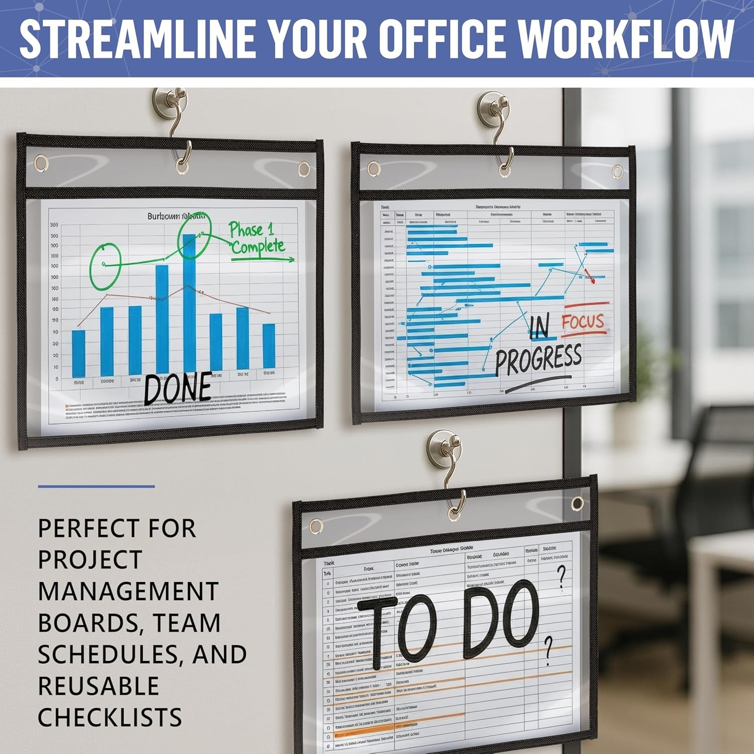 Professional 8.5x11 Horizontal Dry Erase Ticket Holders - 5 Pack for All Uses