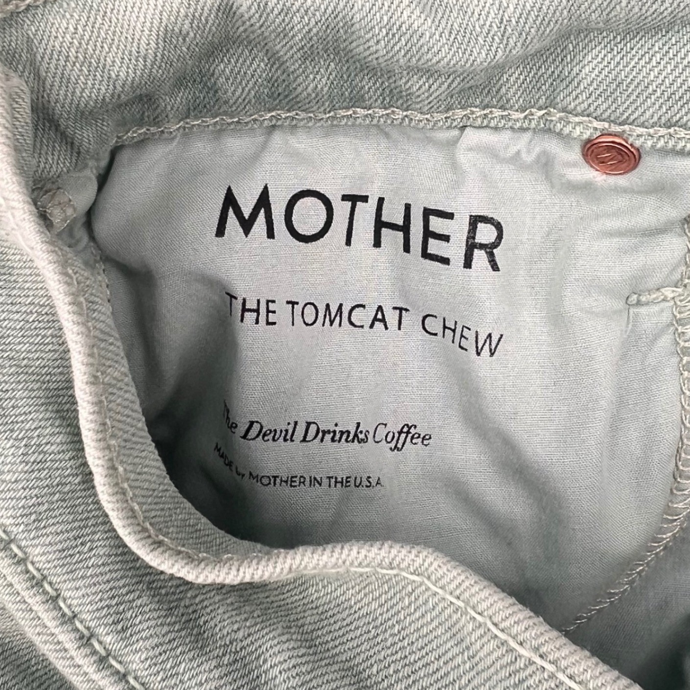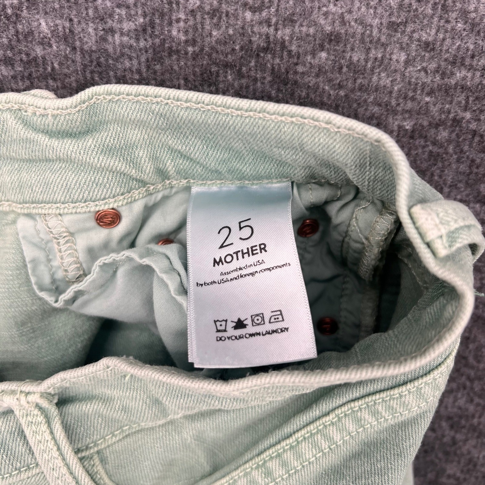 Mother Superior Tomcat High Rise Straight 25 Distressed Jeans Green Raw Hem