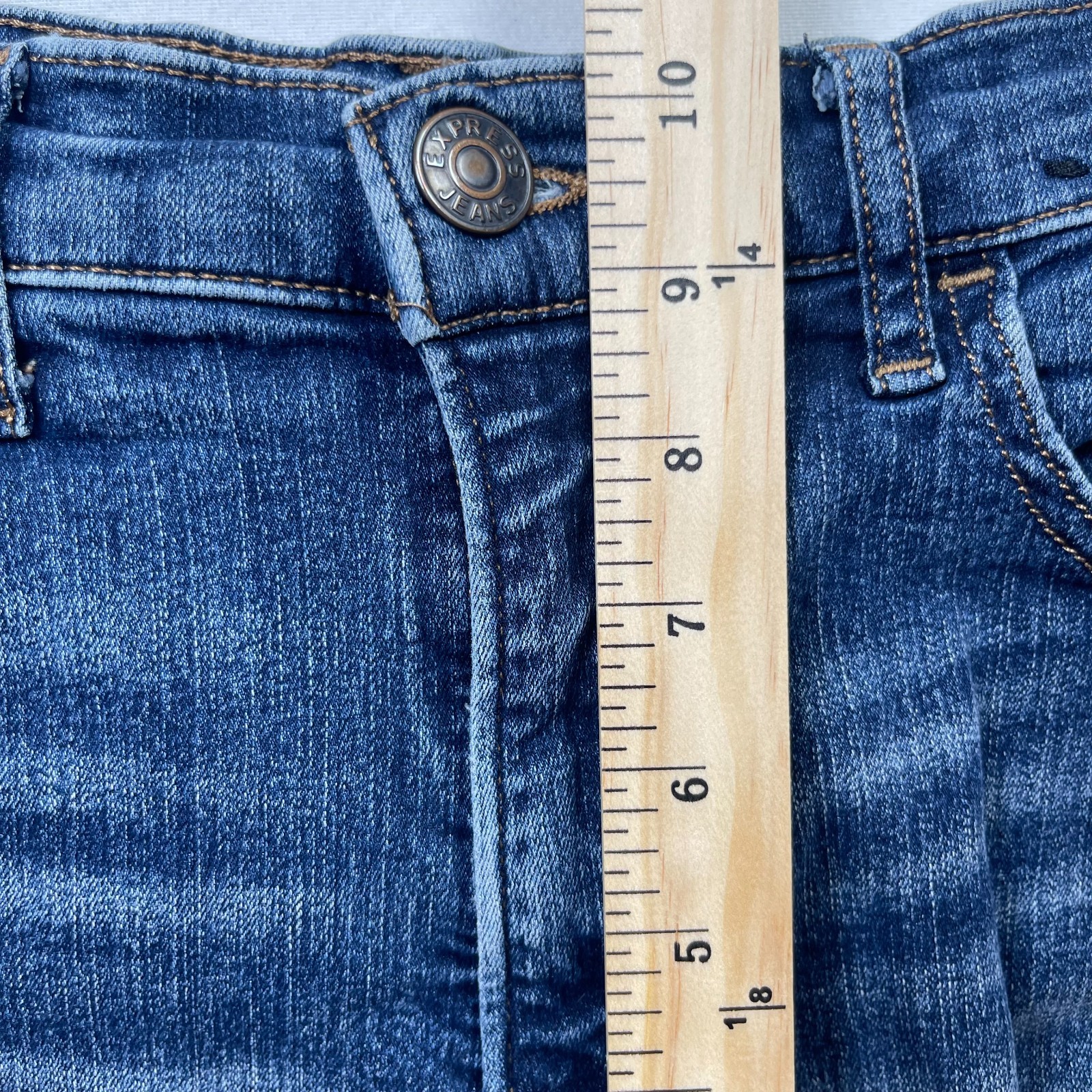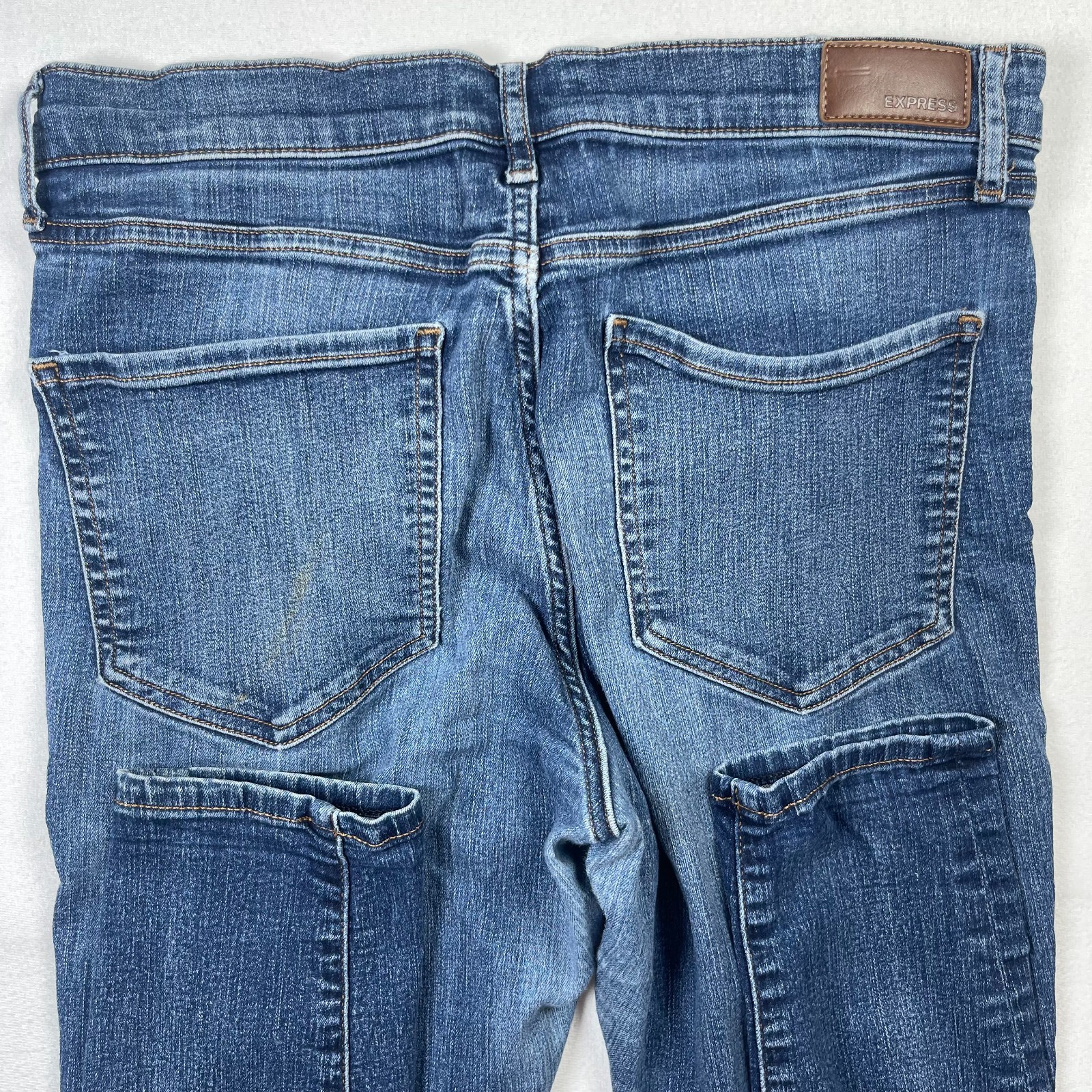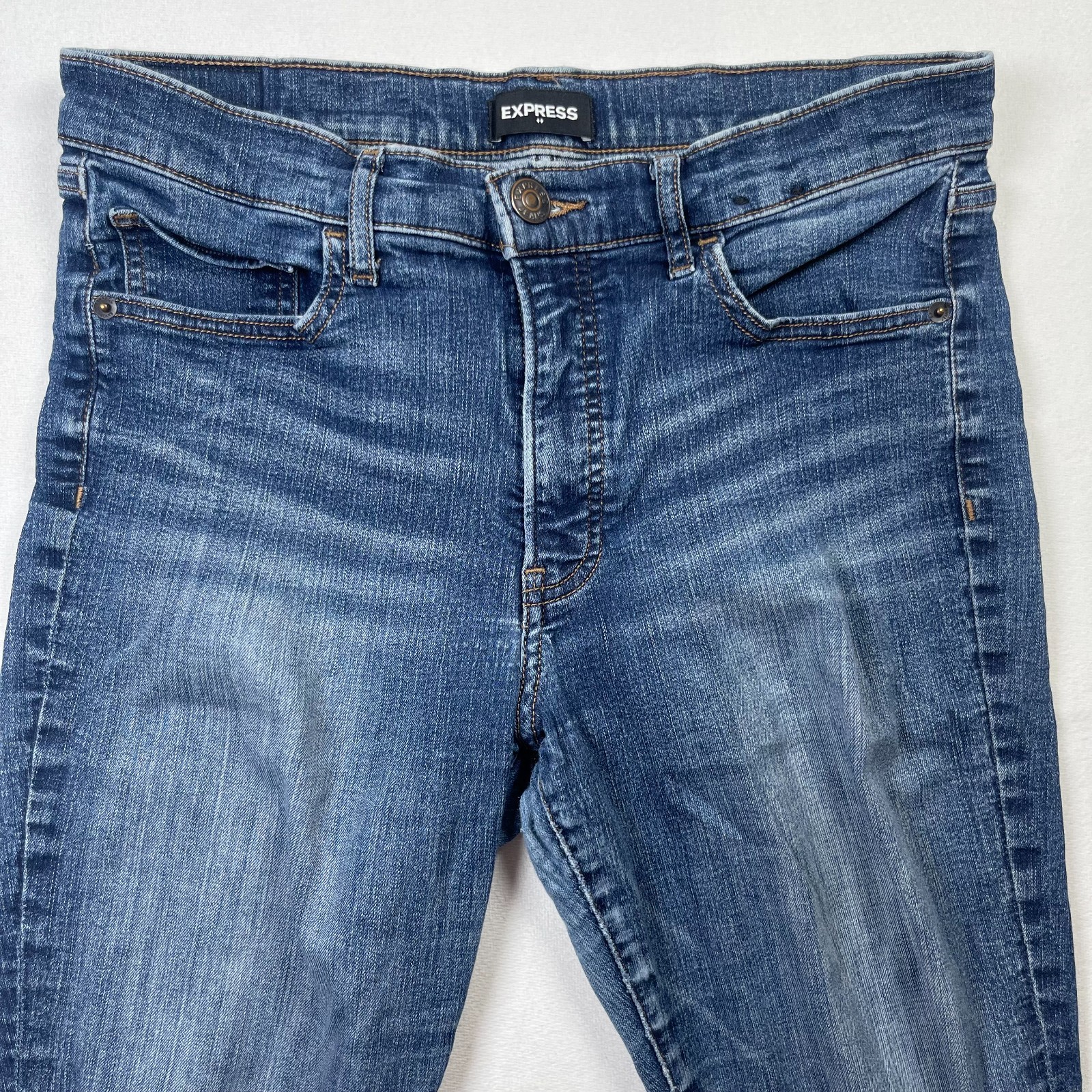 как выглядит Express Jeans Womens 10 Blue Denim Cotton Stretch 5-Pockets Mid-Rise Skinny Leg фото