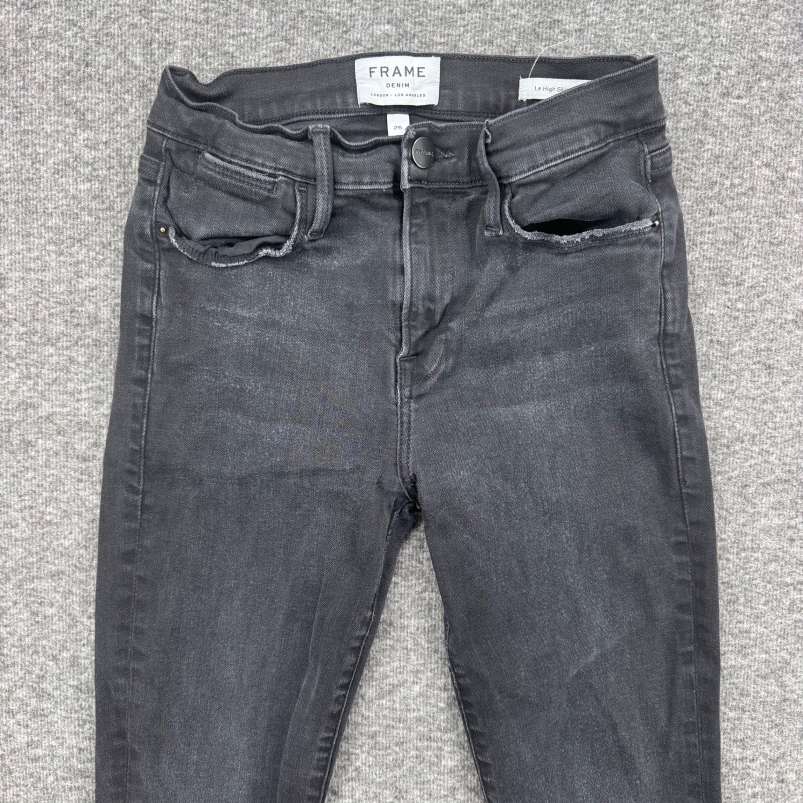 Frame Le High Skinny Jeans Washed Black Chewed Raw Step Hem Womens Size 26