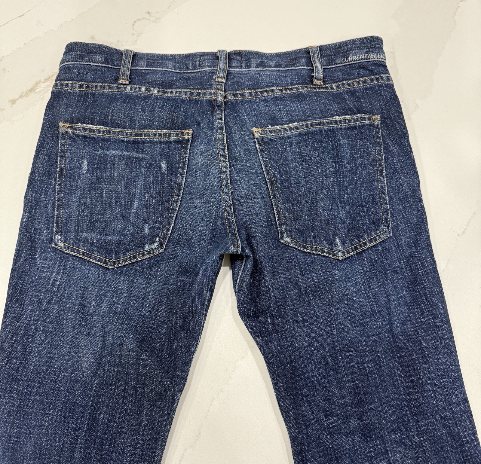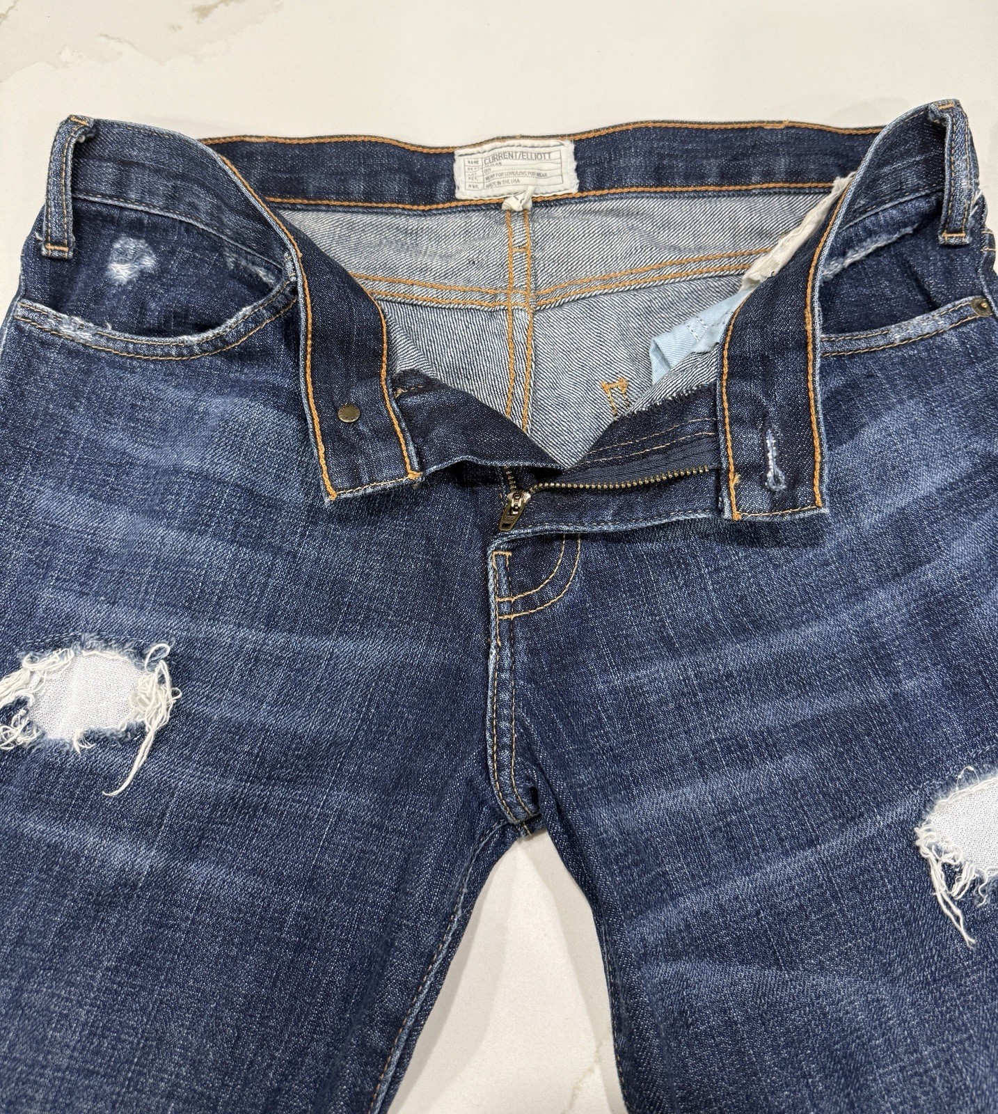 Current/Elliott Jeans Womens 27 Blue Dark Wash Distressed The Elephant Bell BOHO