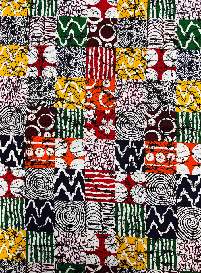 African Wax Print, 100 Cotton, Sell by 6 Yards-Green Red Orange White Black