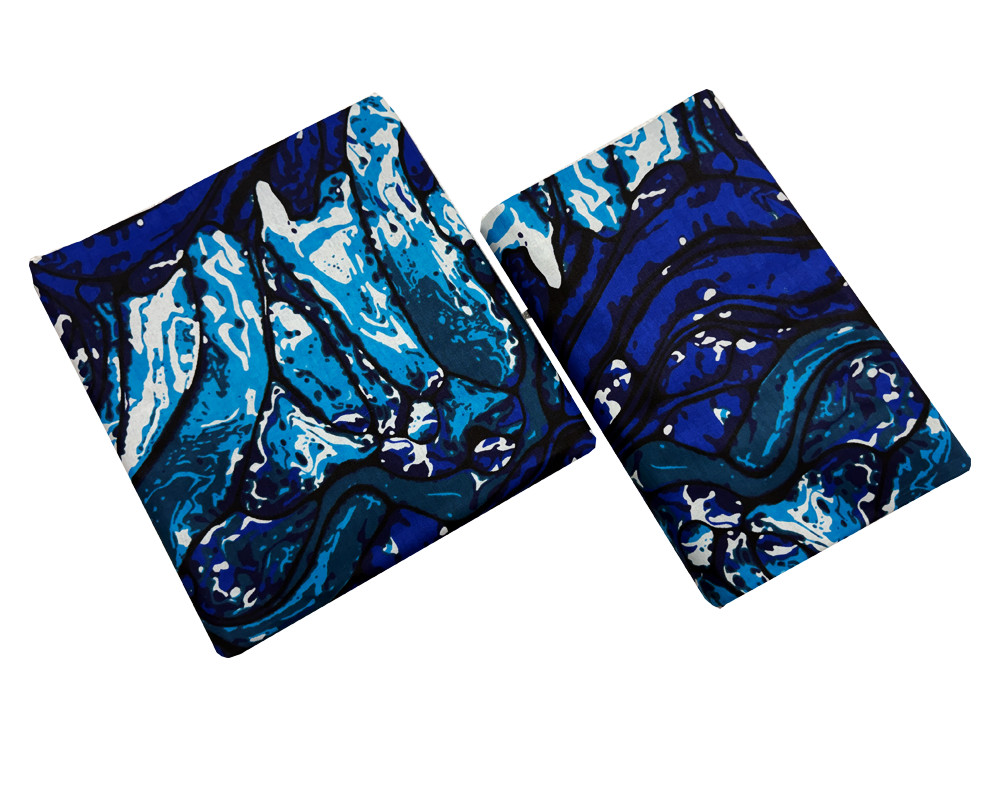 African Wax Print,100 Cotton, Sell by 6 Yards-Azure blue Navy White Black