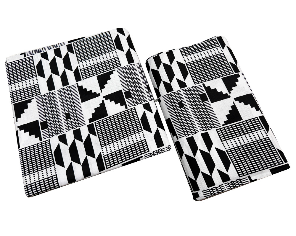 African Wax Print,100 Cotton, Sell by 6 Yards-Black and White