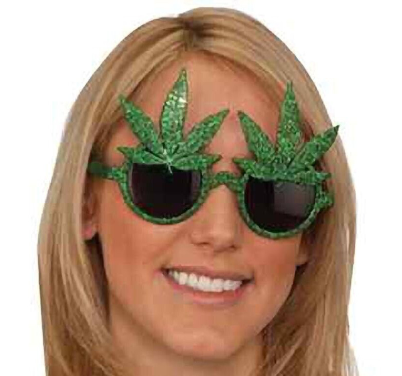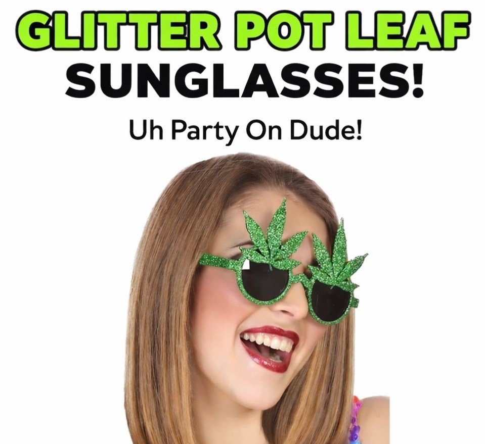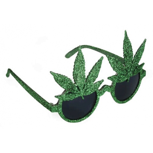 GLITTER POT LEAF SUNGLASSES Funny Glasses Marijuana Green Reefer Weed Party Gag