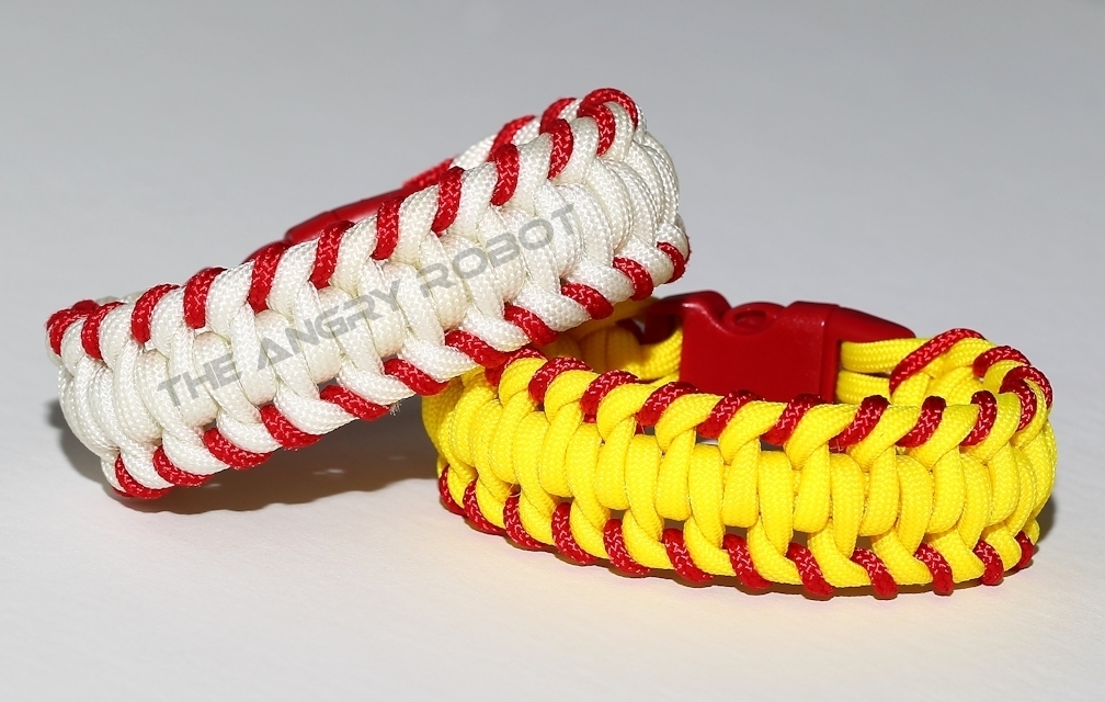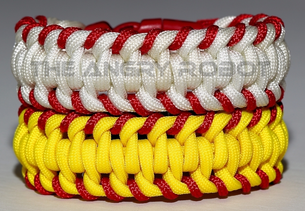 Baseball Stitched Paracord Survival Bracelet - White Red - Red Buckle