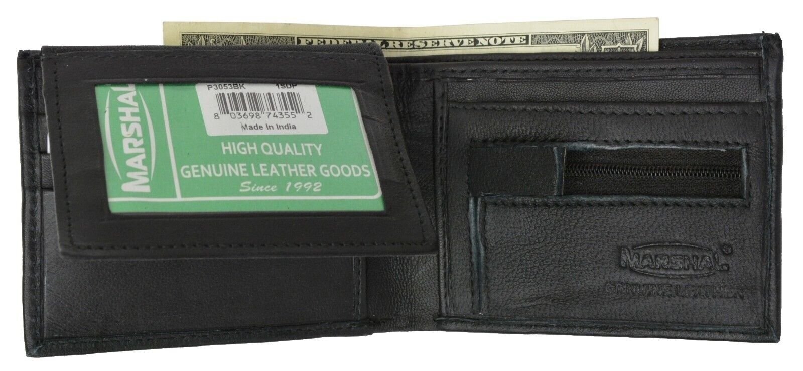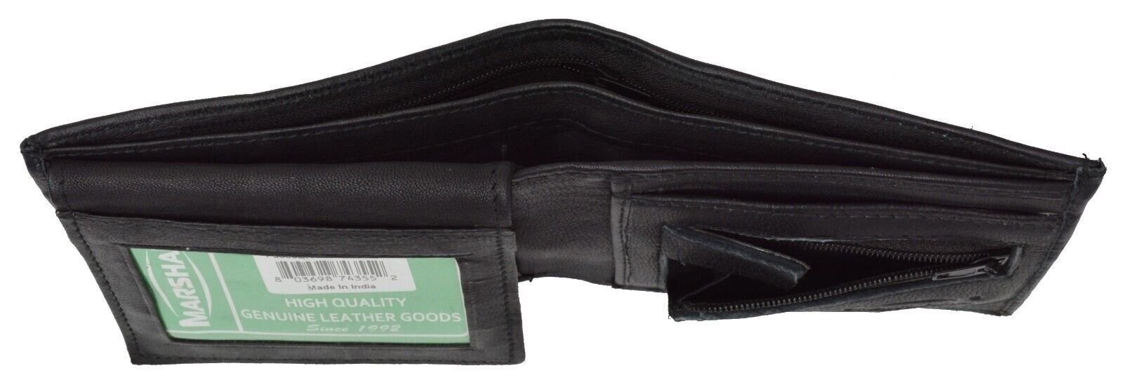 как выглядит Mens Black Premium Leather Bifold Flip ID Holder Coin Pouch Wallet by Marshal фото