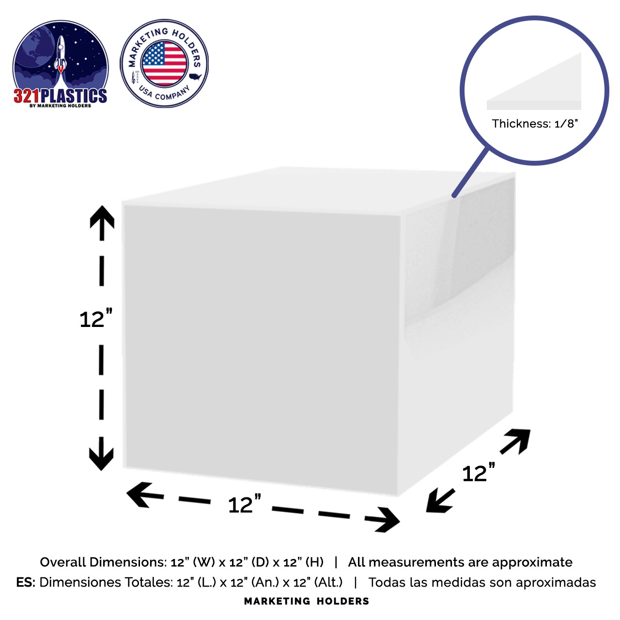 12 Riser Box Glossy White Acrylic Square Product Display Bin One Open Side