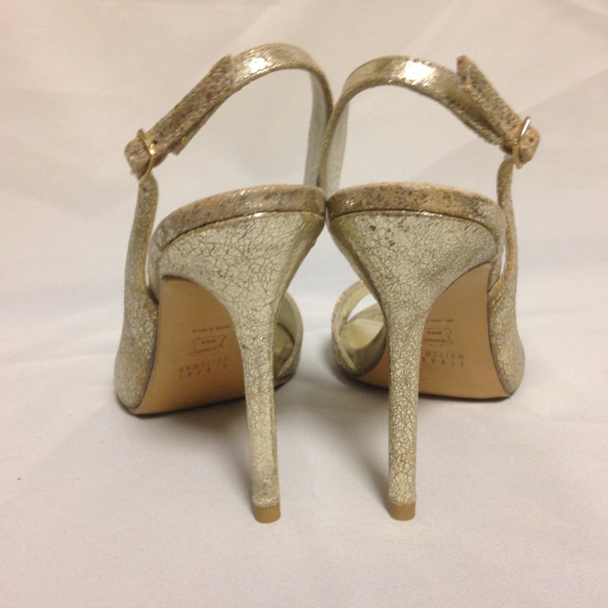 как выглядит Stuart Weitzman Reckless Slingback Sandal 6M Pale Gold Cracked SW58855 New w/Box фото