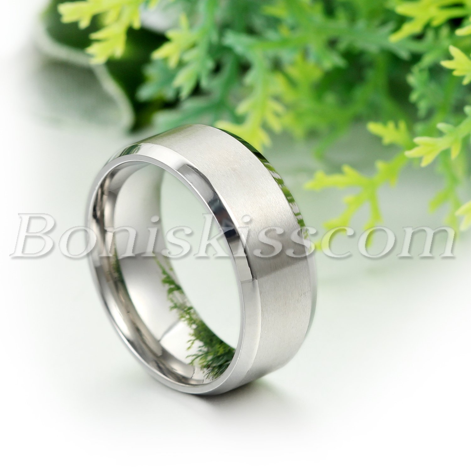 как выглядит 8mm Wide Simple Classic Mens Polish Stainless Steel Wedding Ring Band Size 5-14 фото