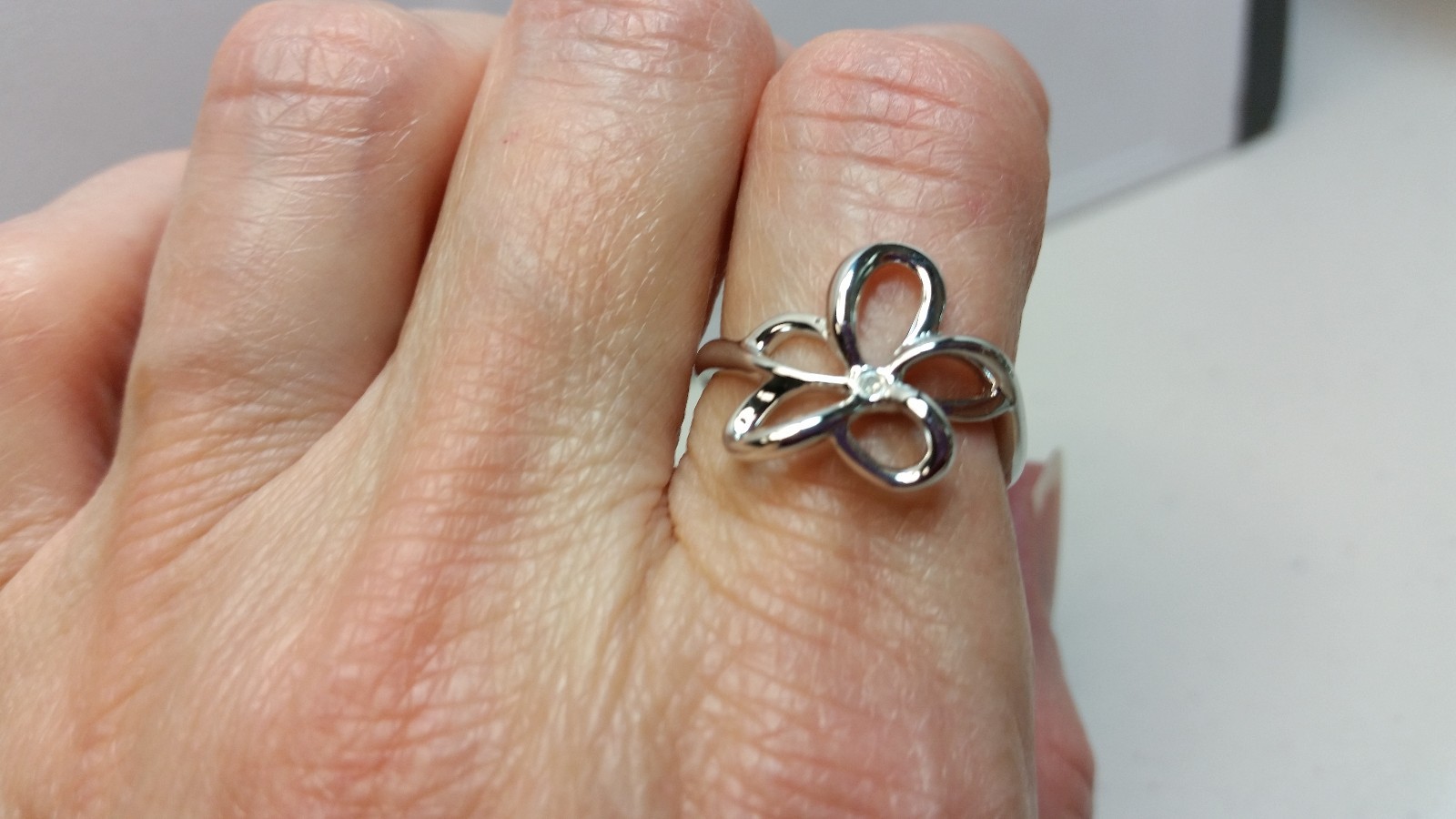 как выглядит Beautiful Open Petal Flower Diamond Ring 925 Sterling Silver Size 7 1/2 фото