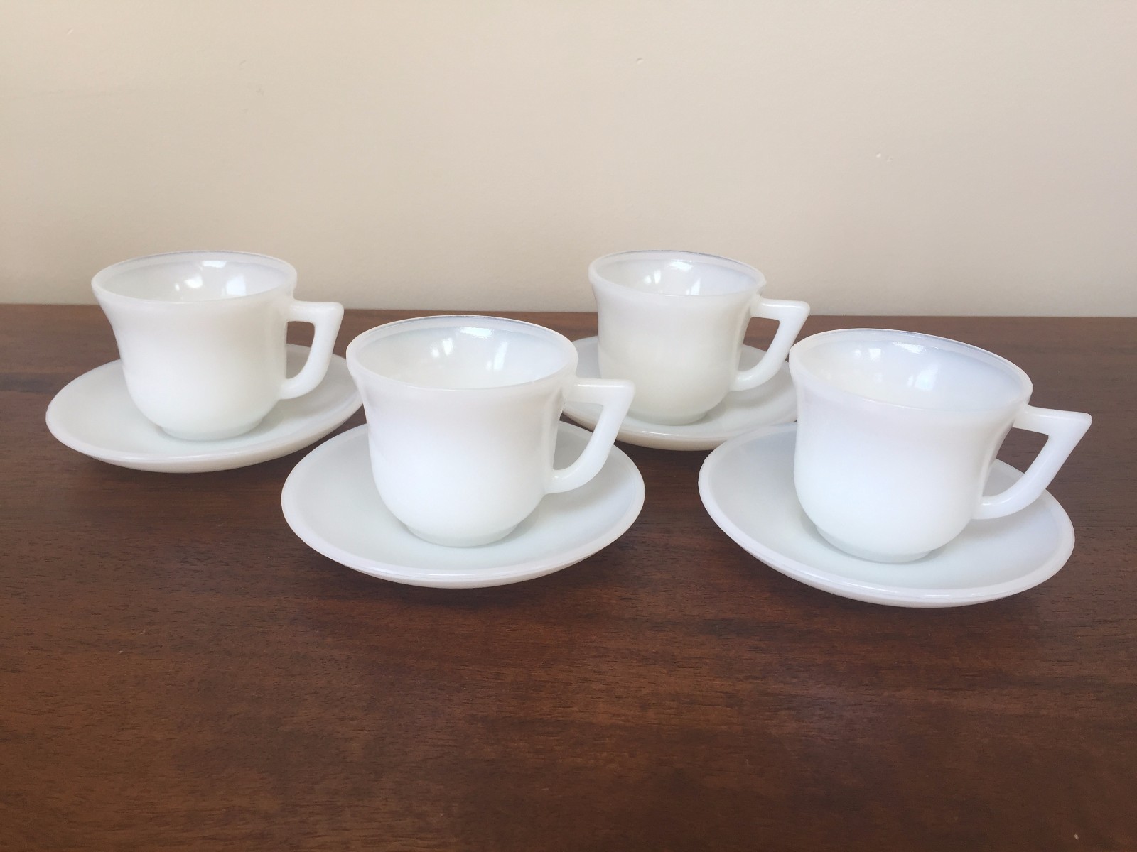 4 Hazel-Atlas 20th CENTURY LITTLE HOSTESS Child Milk Glass Cup Saucer Sets 2