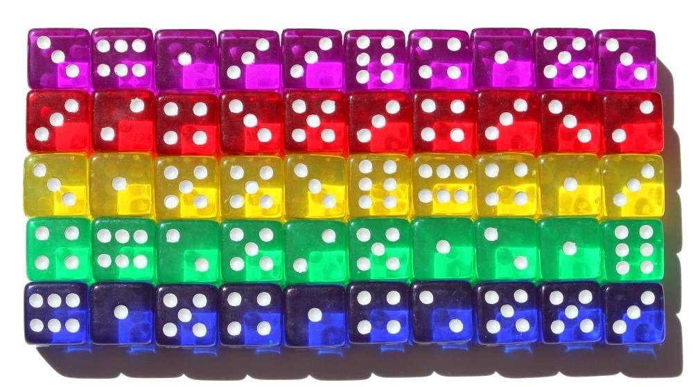 Title: 50 6-Sided Dice | 16mm | 5 Colors
