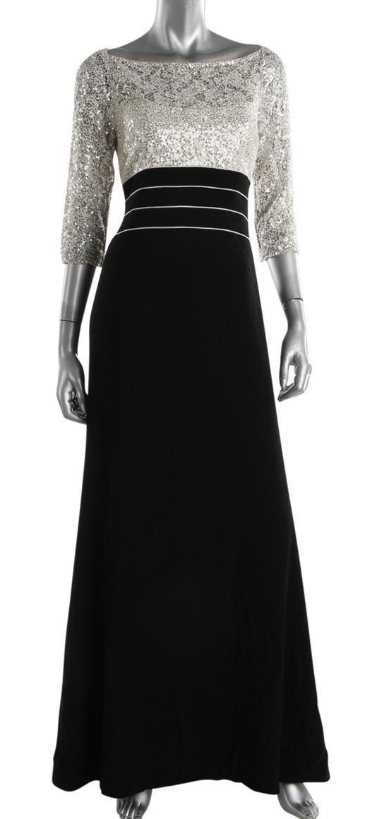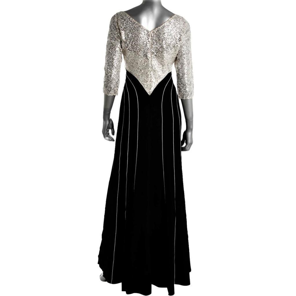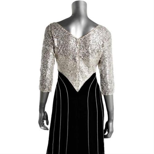 как выглядит Kay Unger Black / Ivory Sequin Bodice 3/4 Sleeve A-Line Formal Gown 2 NEW 760 фото