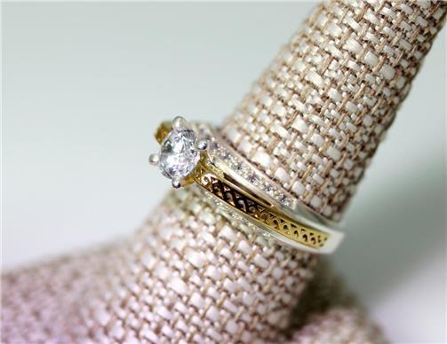 Gorgeous Sterling Silver Vermeil Cubic Zirconia Ring Size 9.25 8192