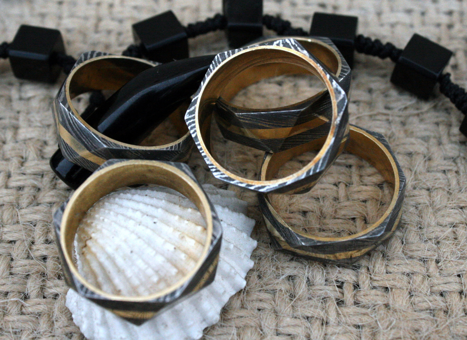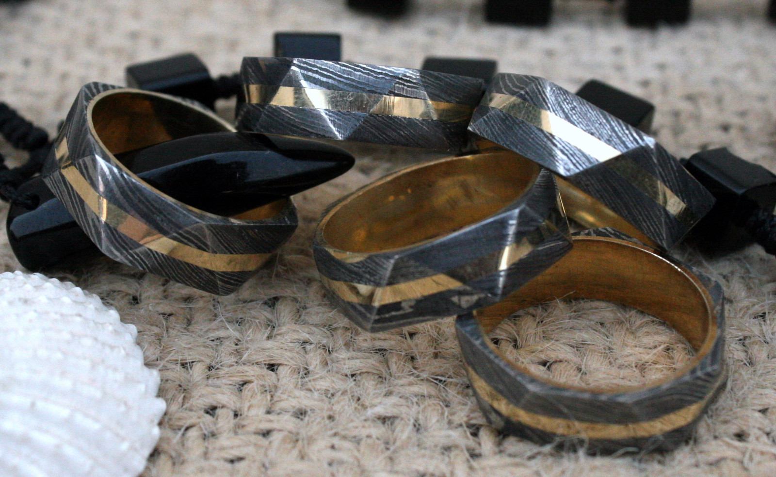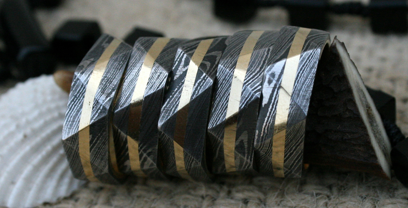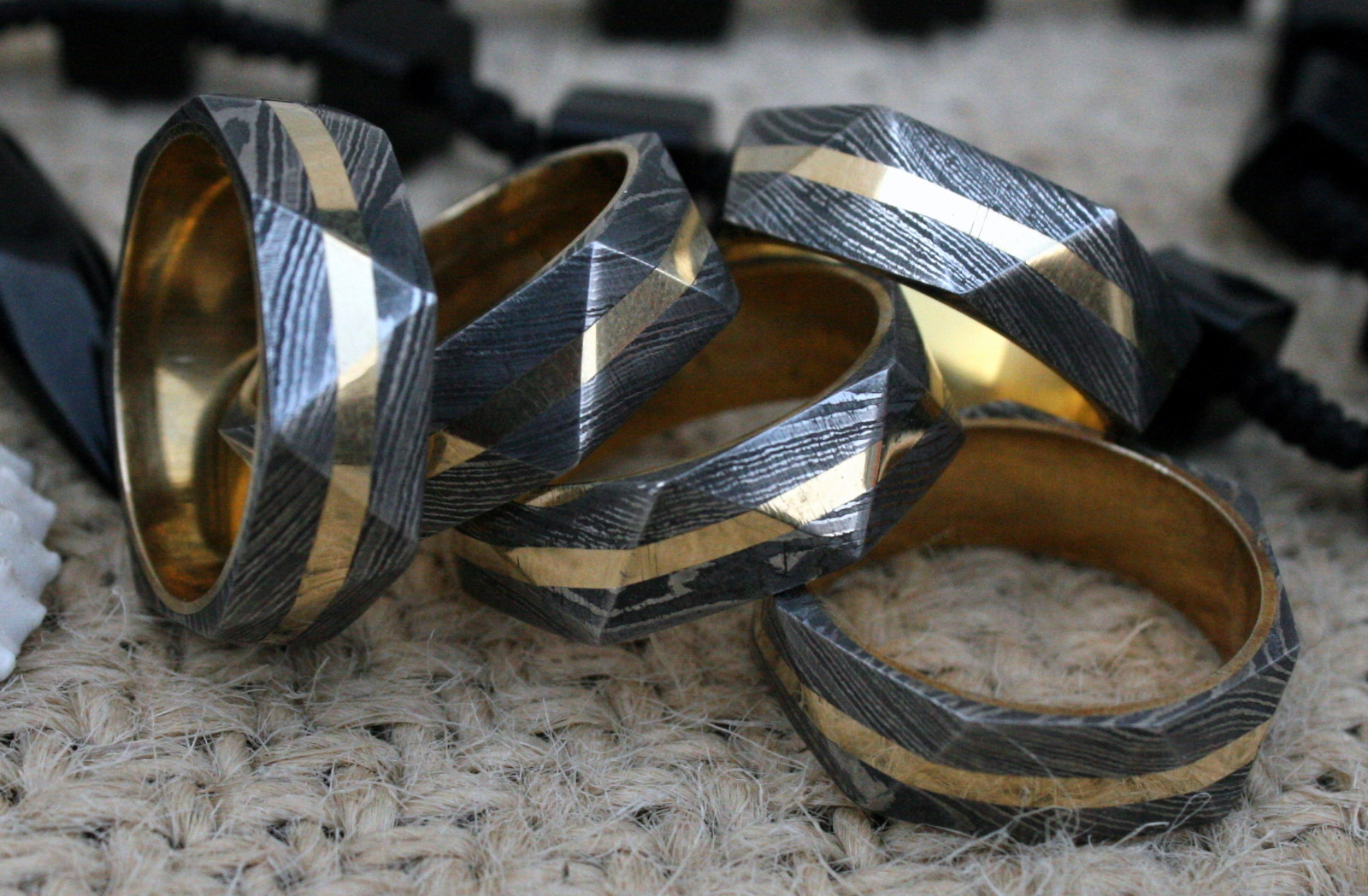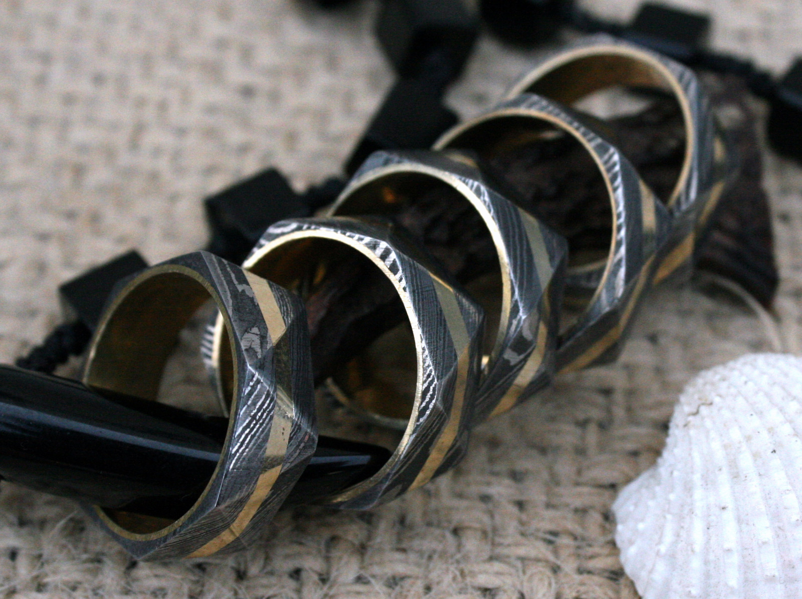 UK TR Damascus Steel Hand Crafted Brass Filled Triangle Style Rings 11 usa