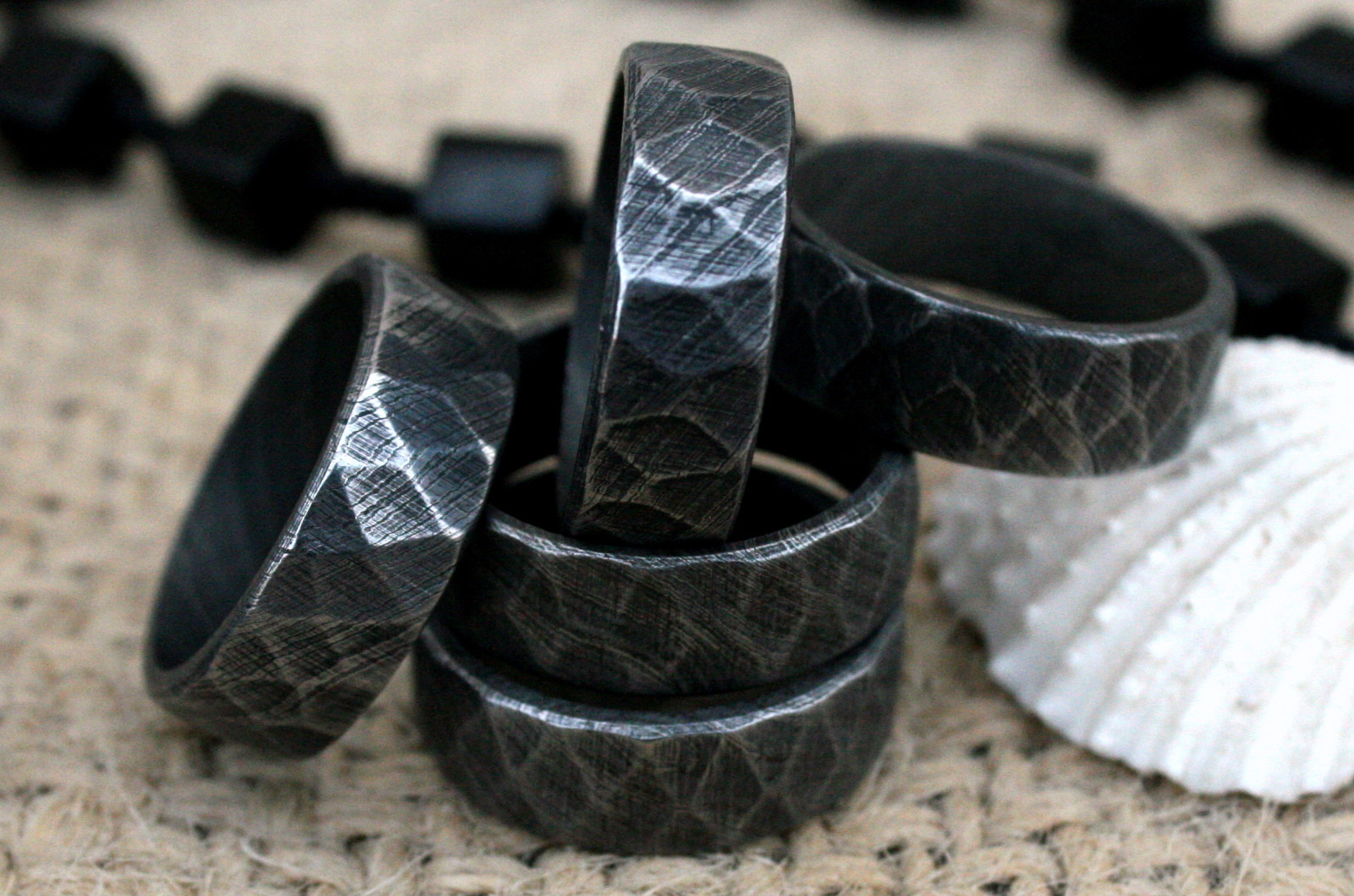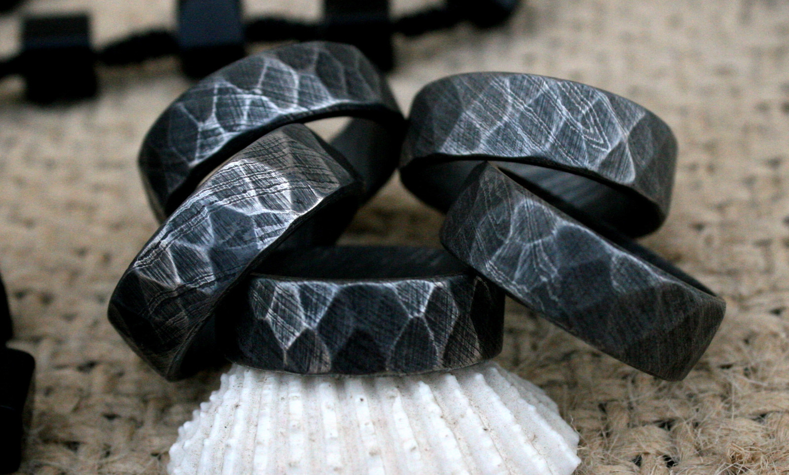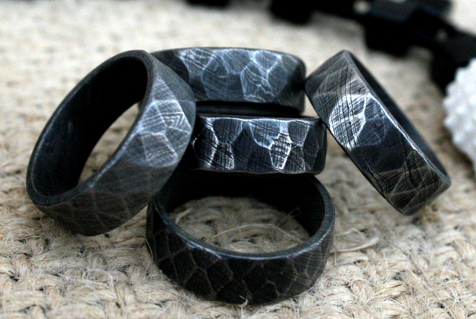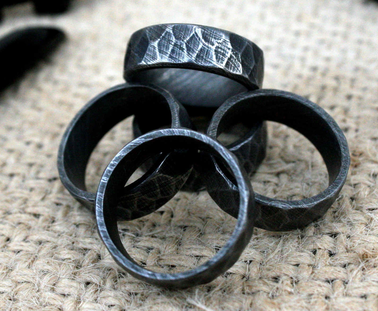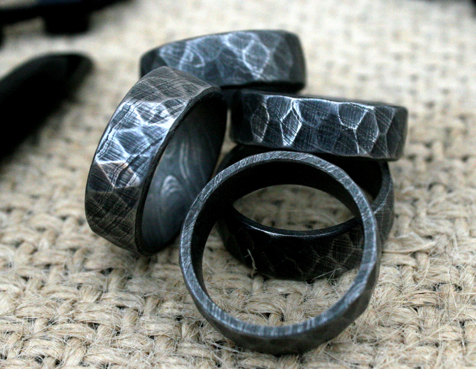 UK DFR Custom Damascus Steel Hand Crafted Tumbled Rock Style Rings size 11 USA