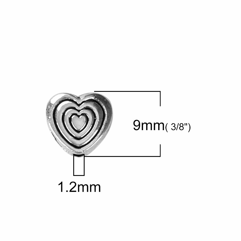 Heart Shaped 9mm Antiuqed Silver Plated Spacer Beads B2149 - 20, 50 Or 100PCs