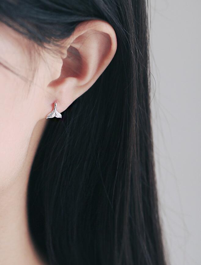 Super Adorable Tiny Mermaid Fish Tail Silver Stud Earrings