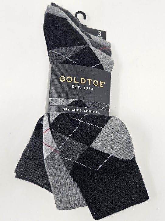 GOLD TOE Men's 3 pack Carlyle Argyle Crew Socks, 10-13, Multi-color