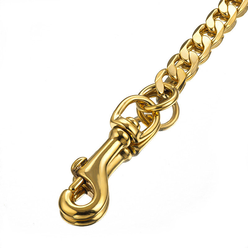 4ft Leather Pet Dog Leash Lead 18K Gold Copper Curb Chain For Walking Running