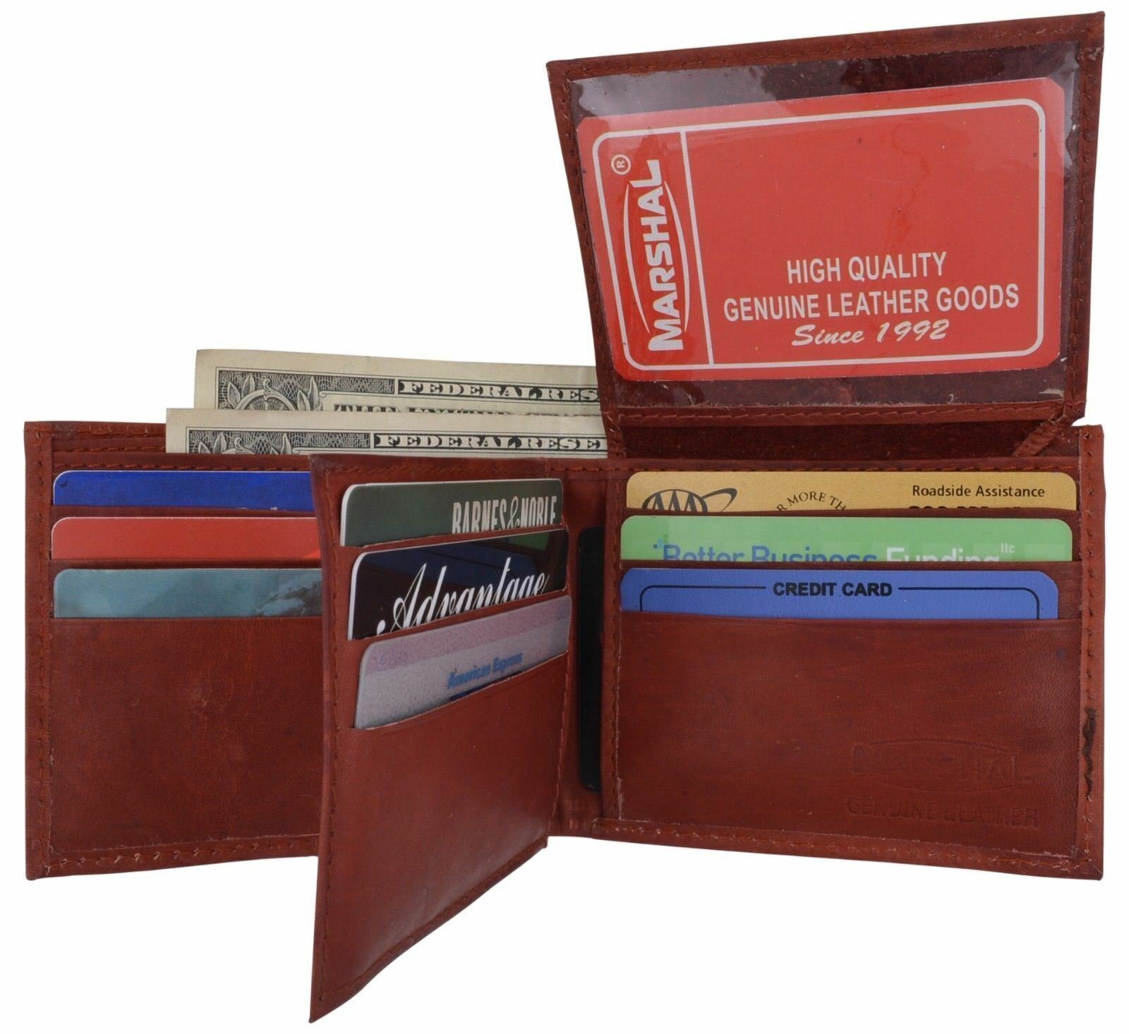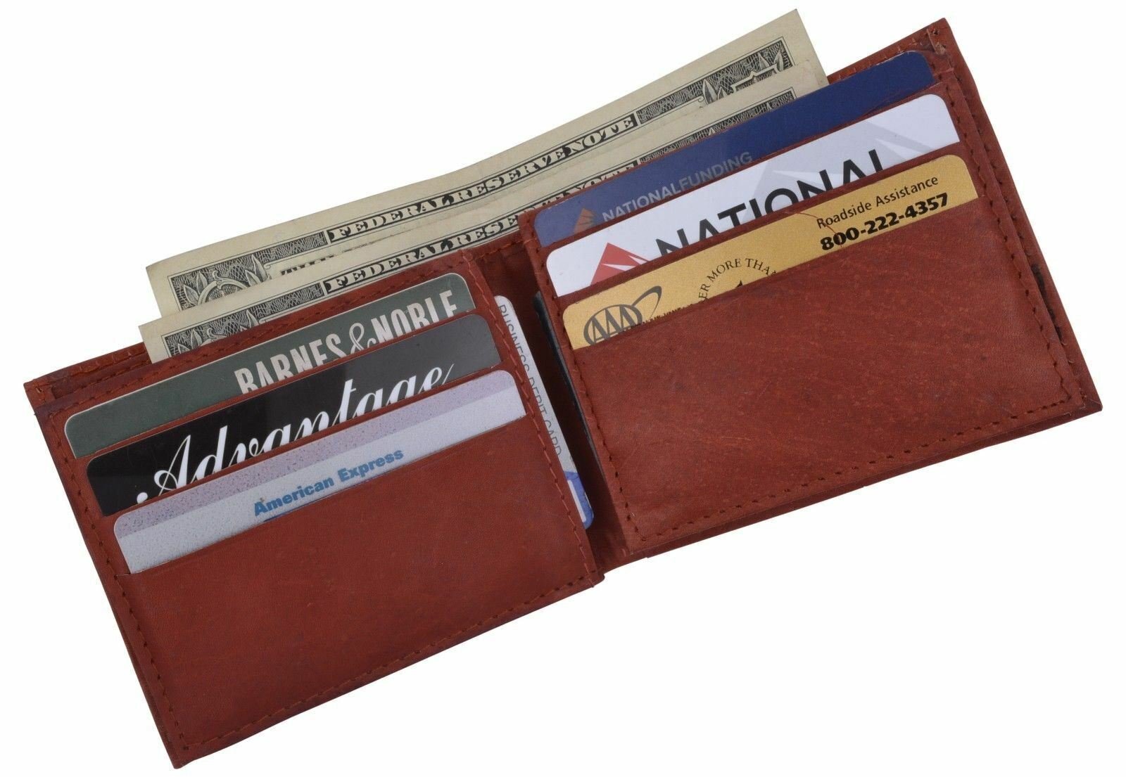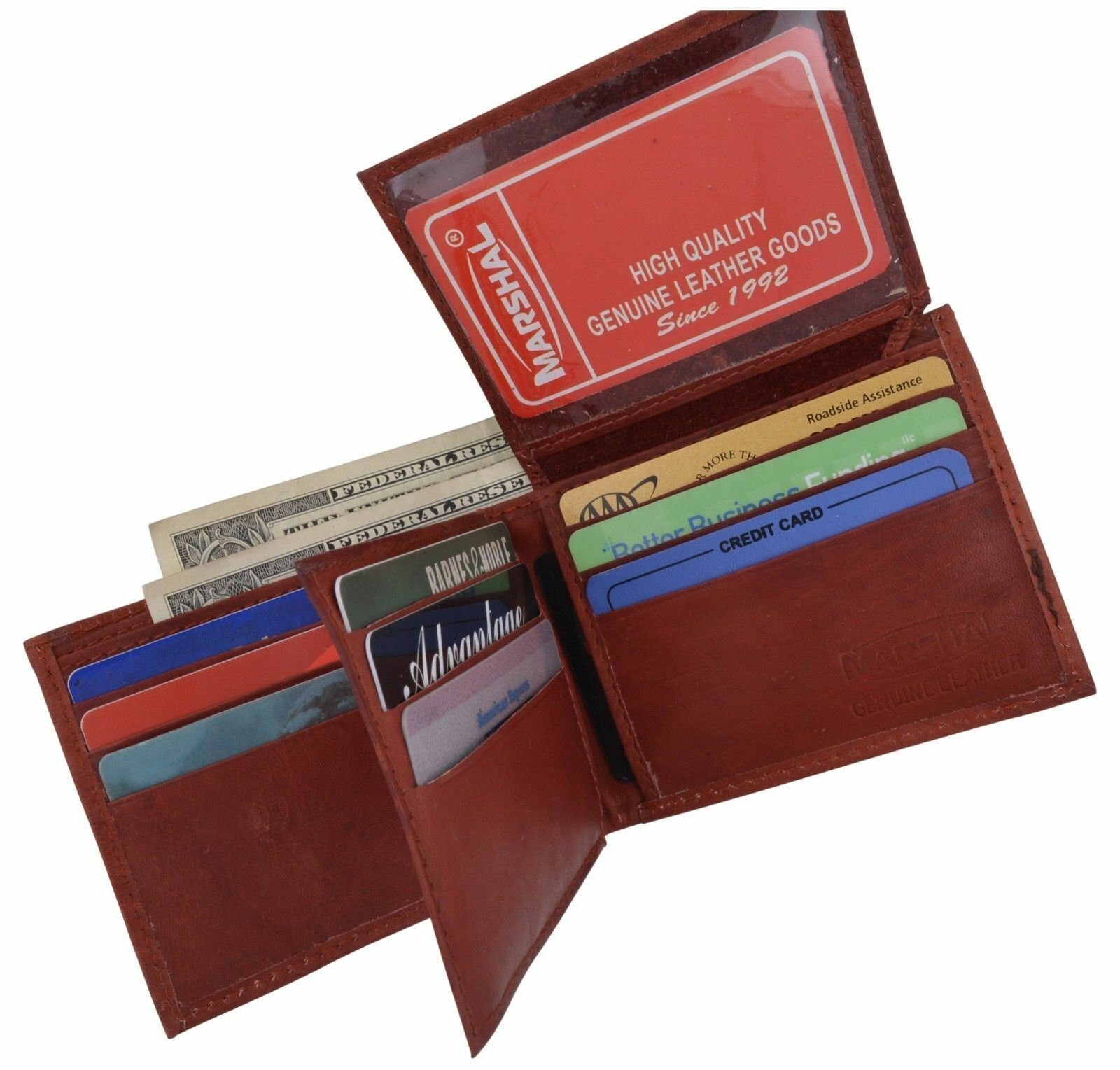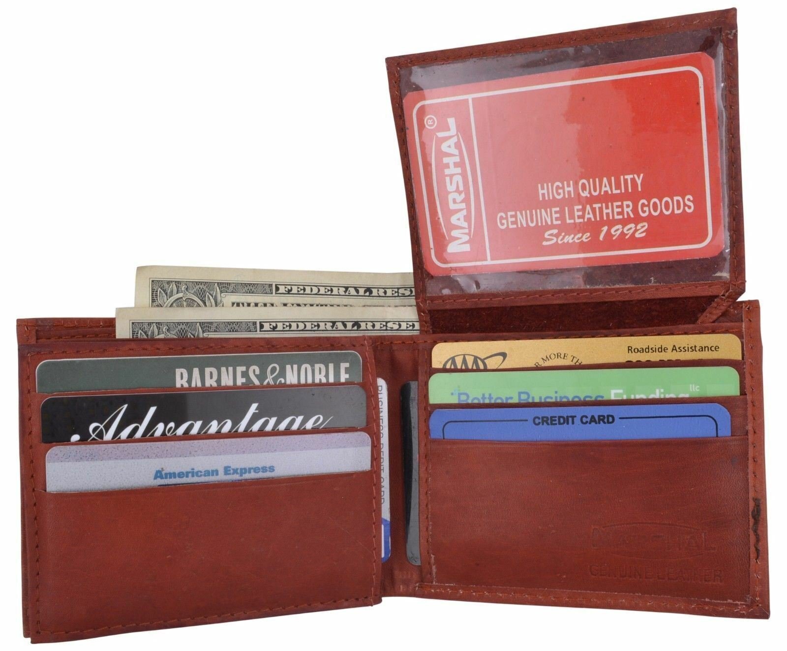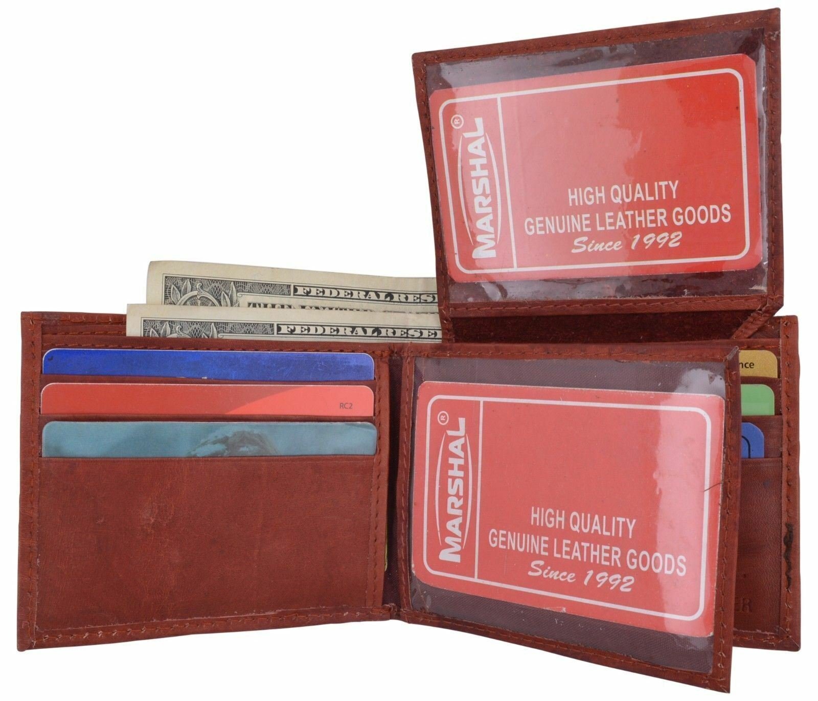 Men's Leather Burgundy Bifold Multi Credit Card Slots 2ID Windows Wallet Marshal
