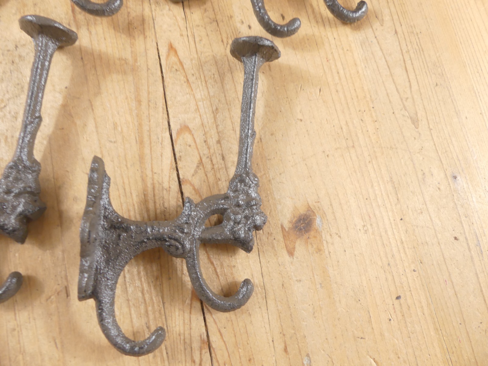 как выглядит 10 Rustic Cast Iron Coat Bath Hooks Ornate Victorian Large Hall Tree Wall Towel фото