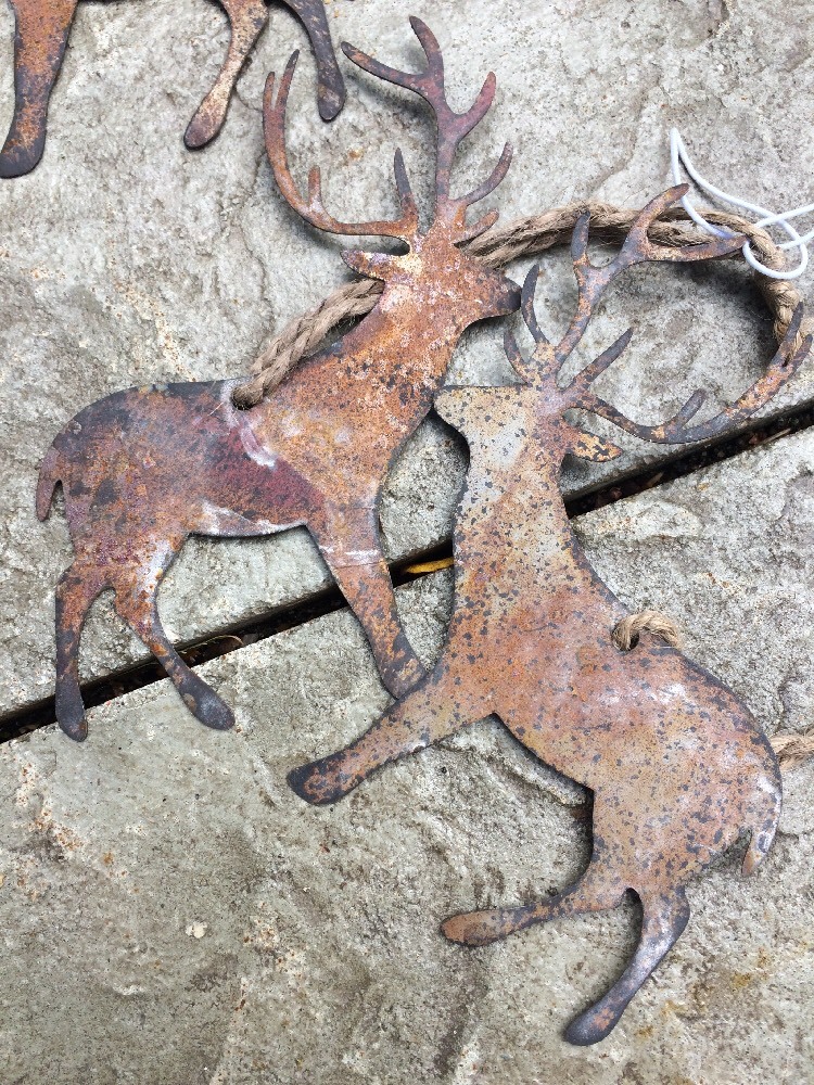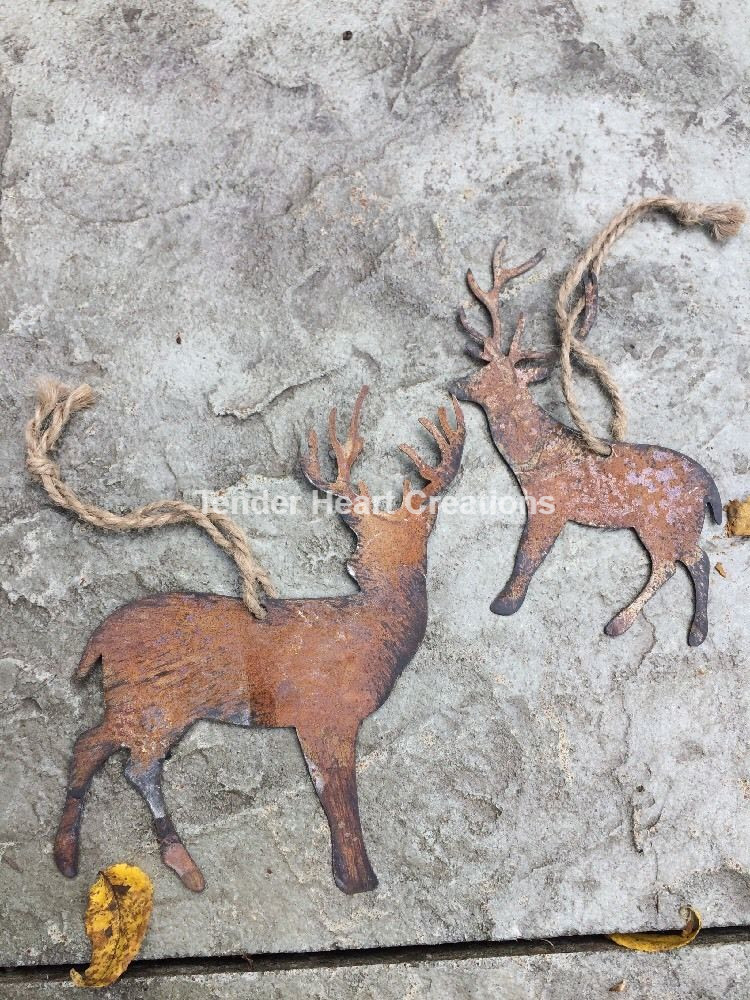 Set/12 RUSTY DEER STAG REINDEER ORNAMENT PRIMITIVE CUTOUTS CUTOUT METAL 4-5