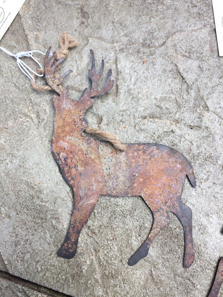 как выглядит Set/12 RUSTY DEER STAG REINDEER ORNAMENT PRIMITIVE CUTOUTS CUTOUT METAL 4-5" фото