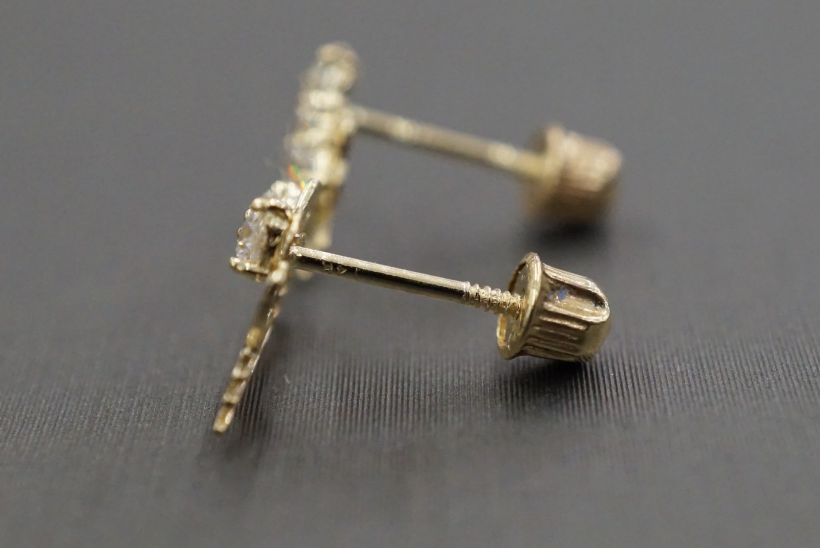 как выглядит 14K Solid Yellow Gold Safery Screw back Cuty Kitty Face Earrings  052642 фото