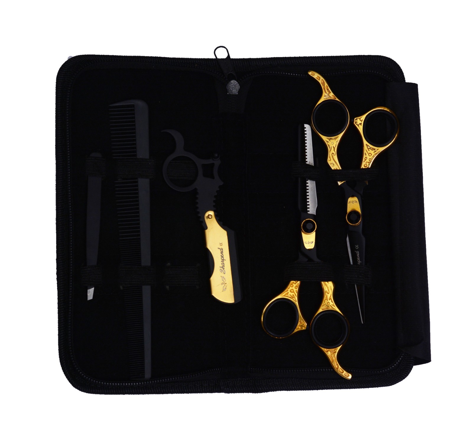 New Professional Barber Hairdressing Scissors Set 6.5 Gold Edition Razor Kit