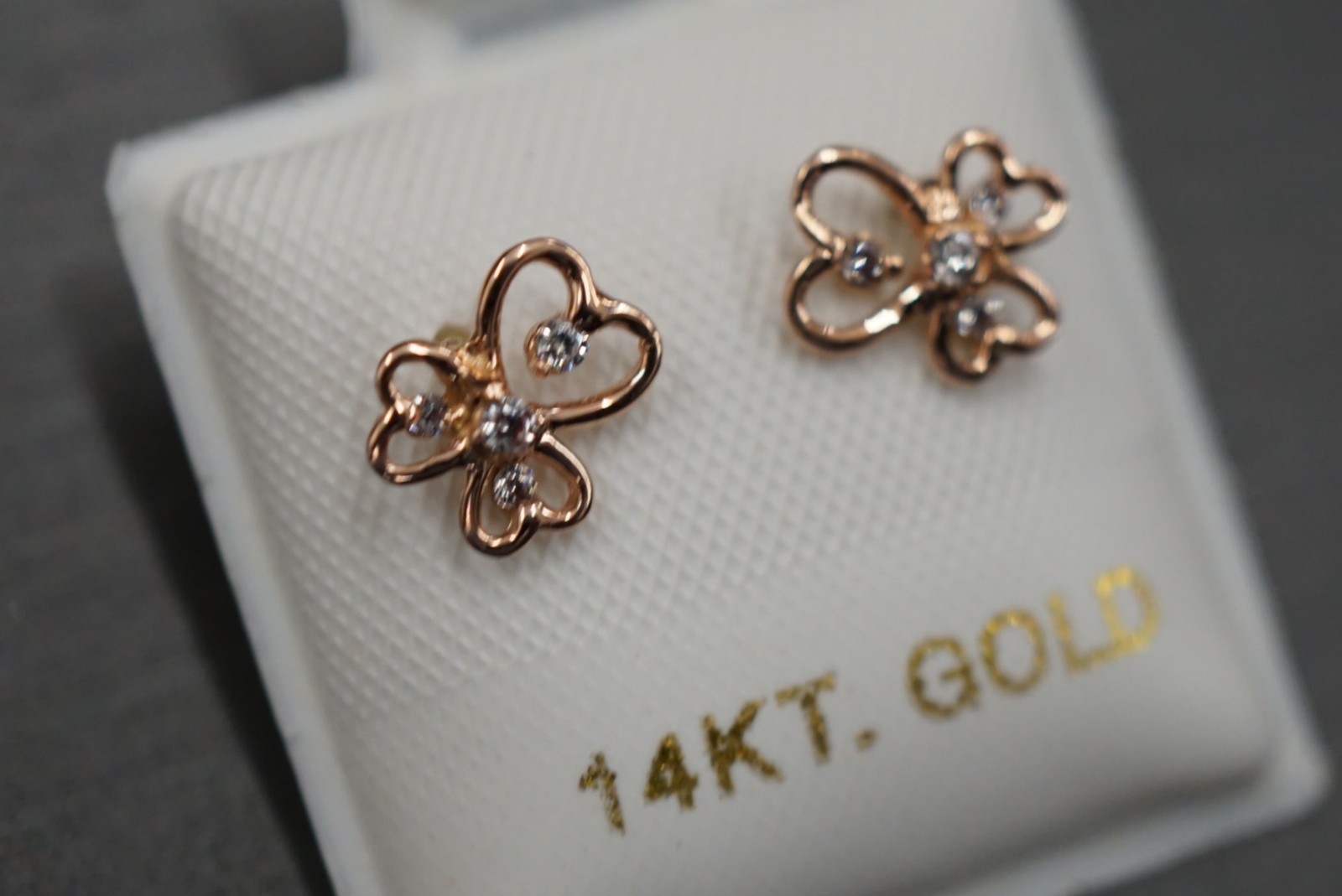 14K Solid Rose Gold Women Children Love Three Heart Screw Back CZ Earring.