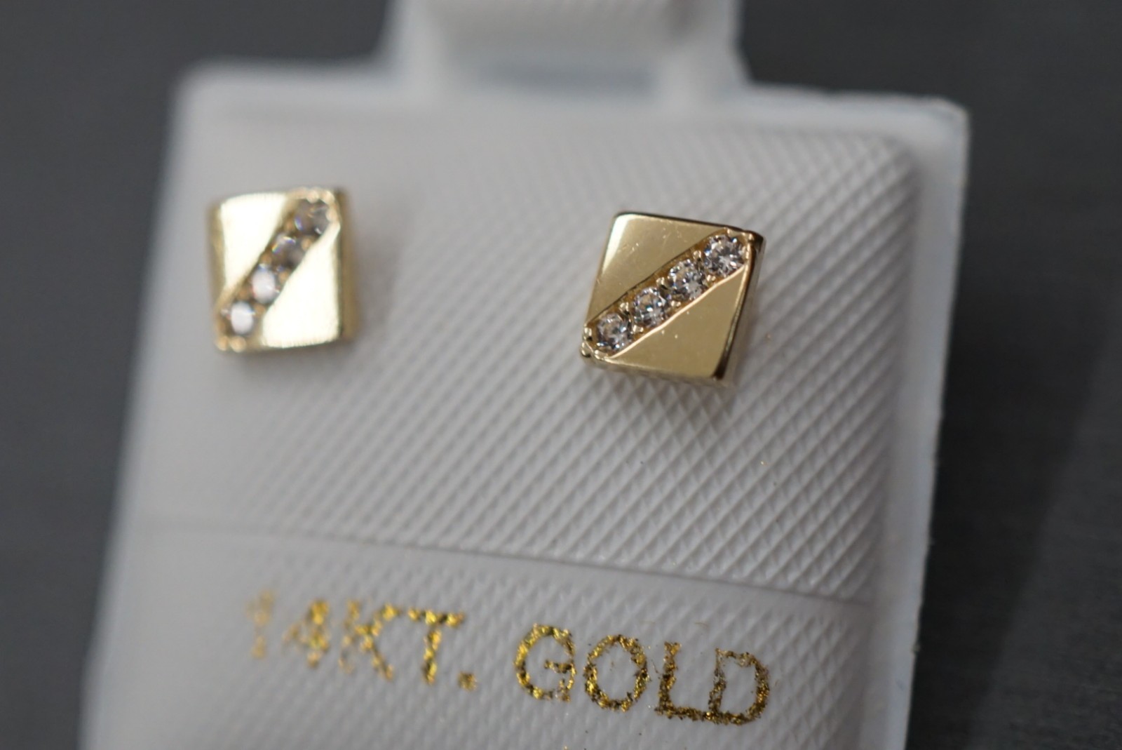 как выглядит 14K Solid Yellow Gold Women Children 4.5MM Square CZ Screw Back Earring. фото
