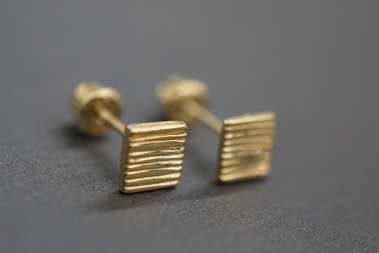 14K Solid Yellow Gold 4.5MM Fancy Square Women Children Screw Back Earrings